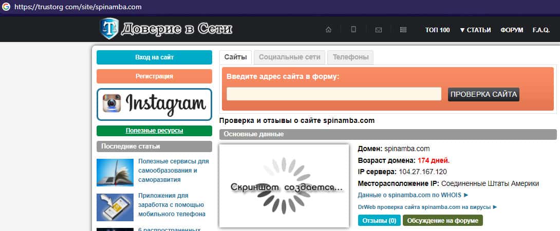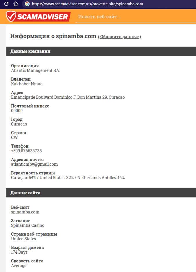 scamadviser com - сайт с технической информацией о жуликах Spinamba
