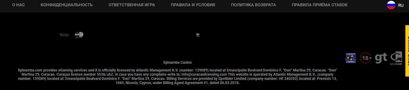 Несмотря на огромное количество лапши со стороны аферистов Spinamba они ничего не говорят о своей лицензии или же регулировании, что ставит под вопрос вообще их наличие у мошенников Спинамба, которые предлагают сотрудничество пользователям исключительно на основании своего довольно сомнительных обещаний и банальной лапши на уши.