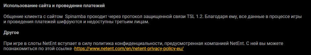 - Условия политики конфиденциальности мошенников Spinamba