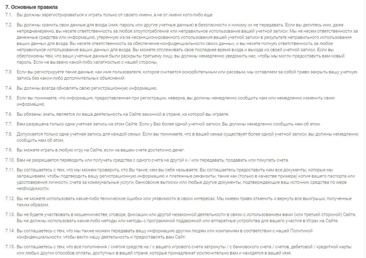 В разделе 7 Основные правила перечисляются условия регистрации на сайте Спортинг Булл, а также говорится о том, что запрещено делать на этой площадке.