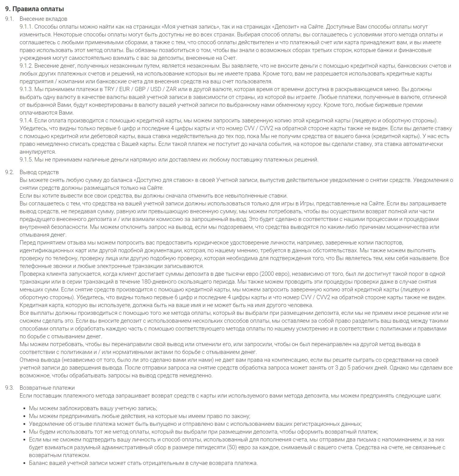 В разделе 9 Правила оплаты говорится о правилах платежей, о том, когда компания Спортинг Булл может заблокировать счет клиента или начать проверку его аккаунта.