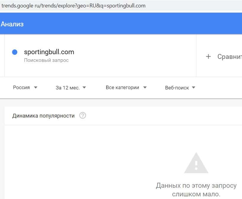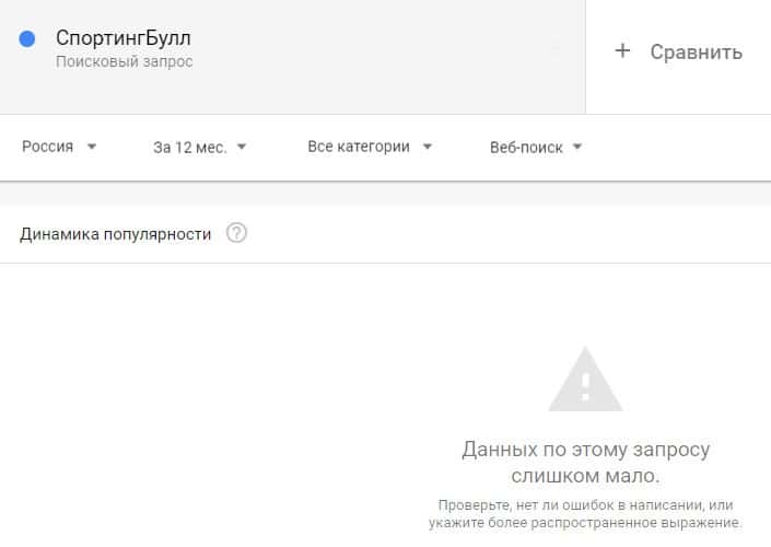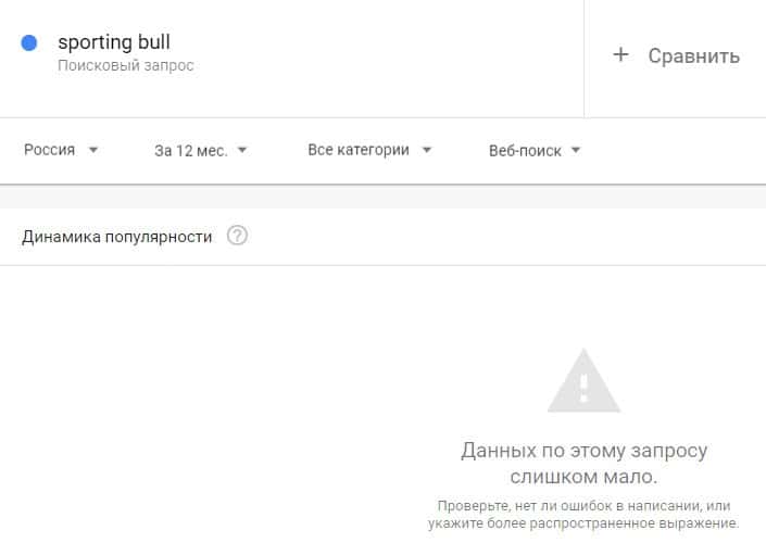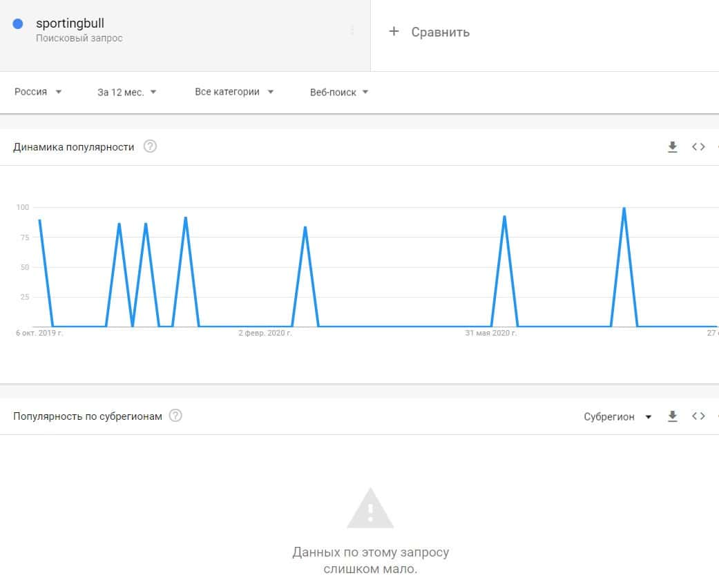 Брендом "SportingBull", написанном на английском языке без пробелов интересовались пользователи, но не слишком часто, судя по данным сервиса Гугл.