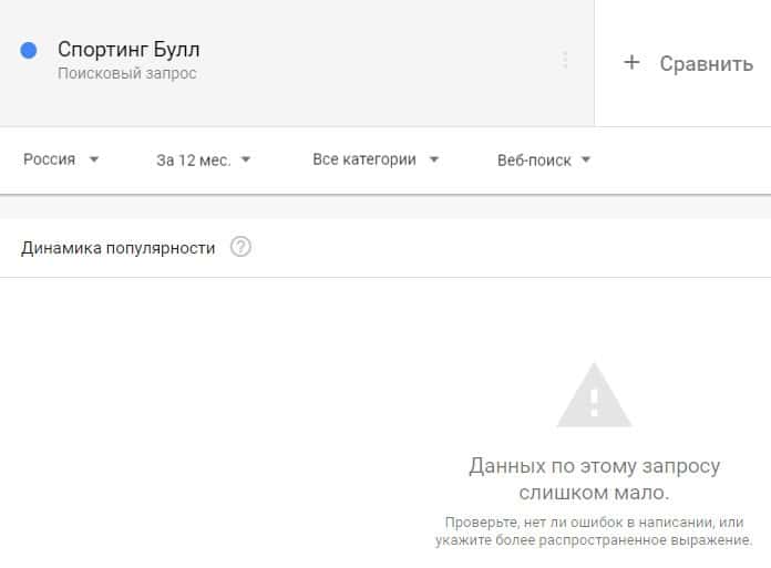 Название бренда "Спортинг Булл" на русском языке с пробелом пользователи не искали в системе Гугл.