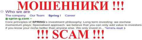 Sprin-G - лохотрон, который предлагает неопытным пользователям интернета вложиться в стартапы, самого разного вида, как оффлайн, так и онлайн. Они предлагают инвестировать в проекты, чтобы получить прибыль, но не говорят о рисках, что не каждый стартап приносит выгоду, а неопытные люди в бизнесе даже об этом и не задумываются. Ни в коем случае не ведитесь на развод со стороны Sprin-G.