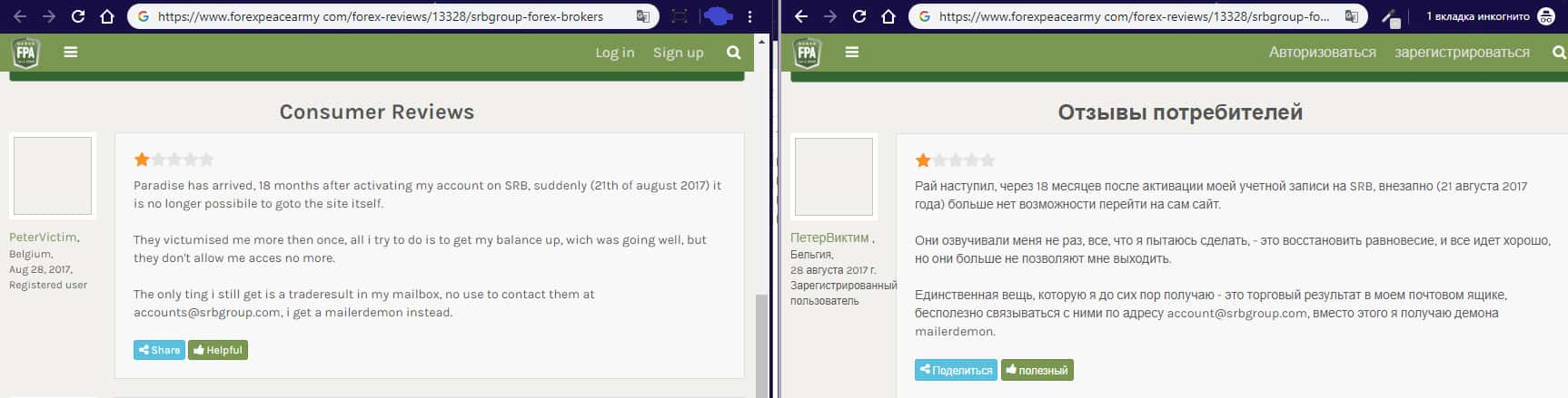 Несмотря на довольно краткий срок существования аферистов SRB Group на просторах сети интернет, а именно менее полугода, мошенники СРБ Груп успели обзавестись довольно негативной репутацией, о чем свидетельствует довольно большое количество негативных отзывов о проходимцах SRB Group на просторах сети интернет, что вы можете увидеть ниже.