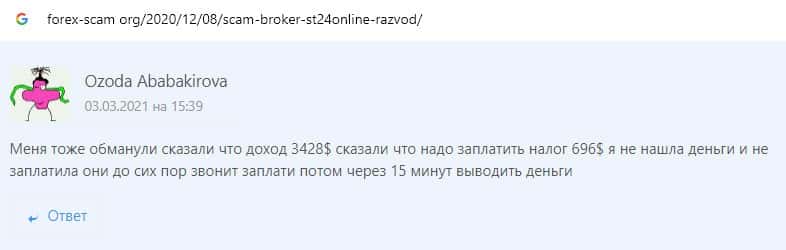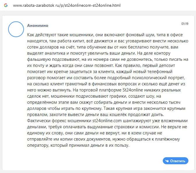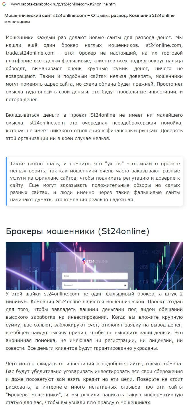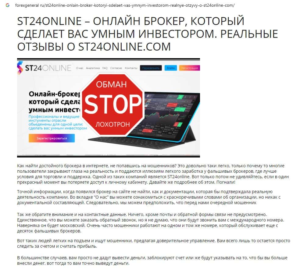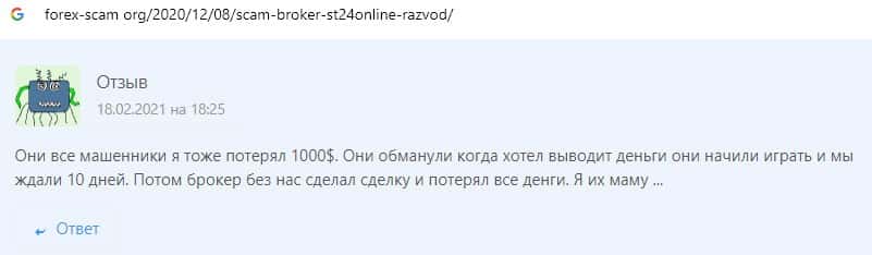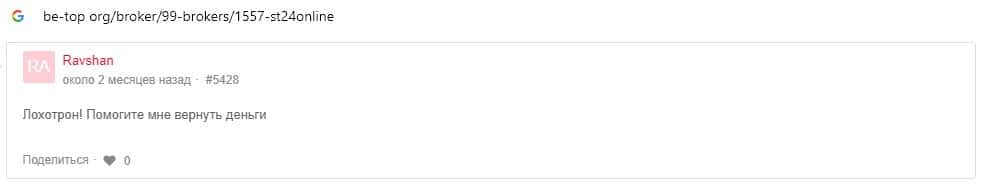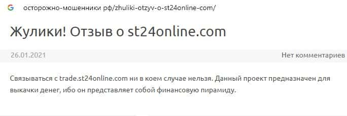 Отзывы о скам-брокере СТ24Онлайн, ныне присутствующие в сети-интернет
