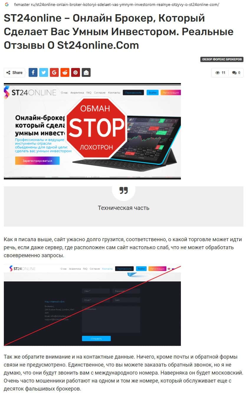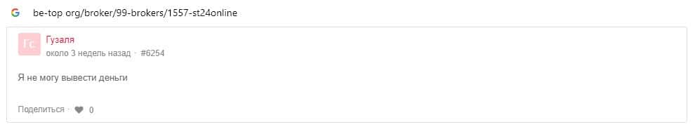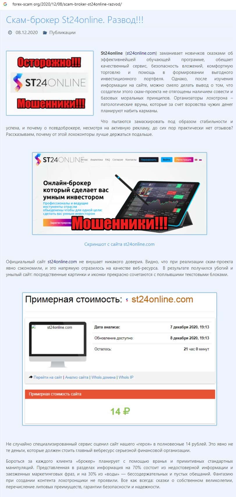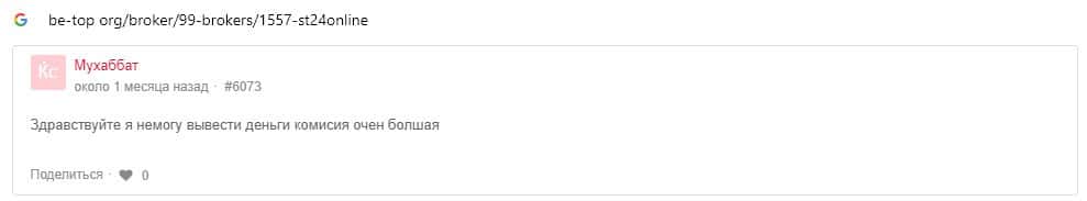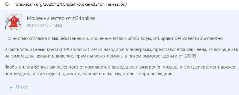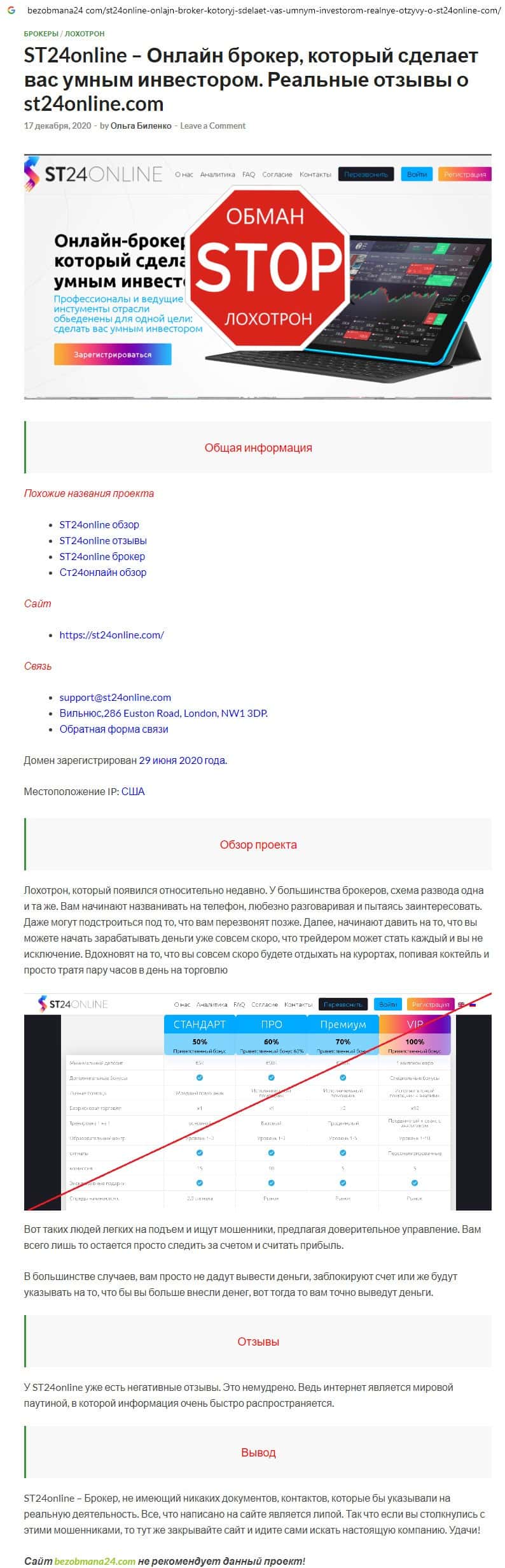 Отзывы о скам-брокере СТ24Онлайн, ныне присутствующие в сети-интернет