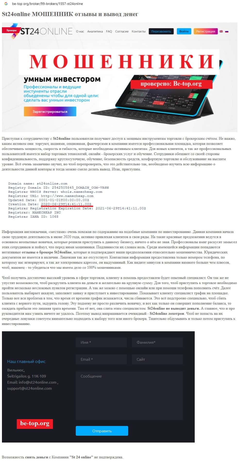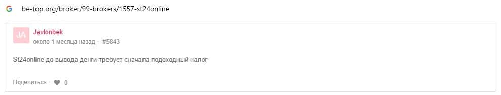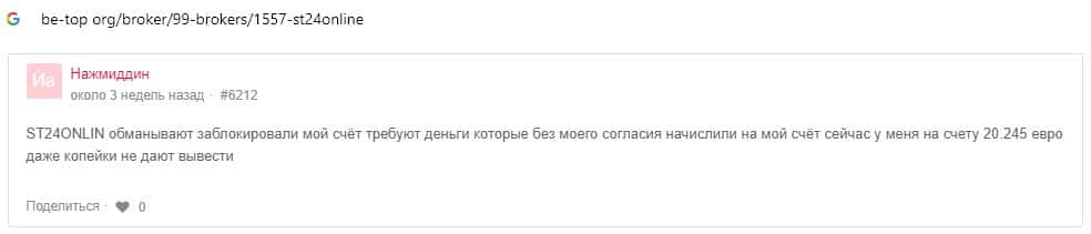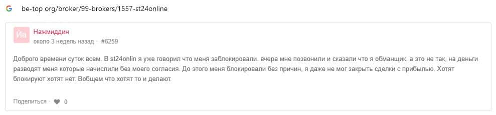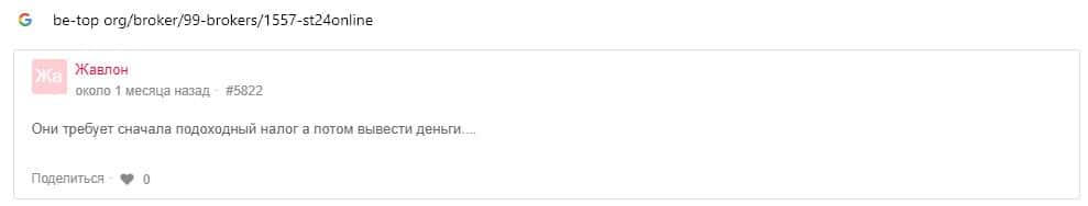 - Отзывы о скам-брокере СТ24Онлайн, ныне присутствующие в сети-интернет