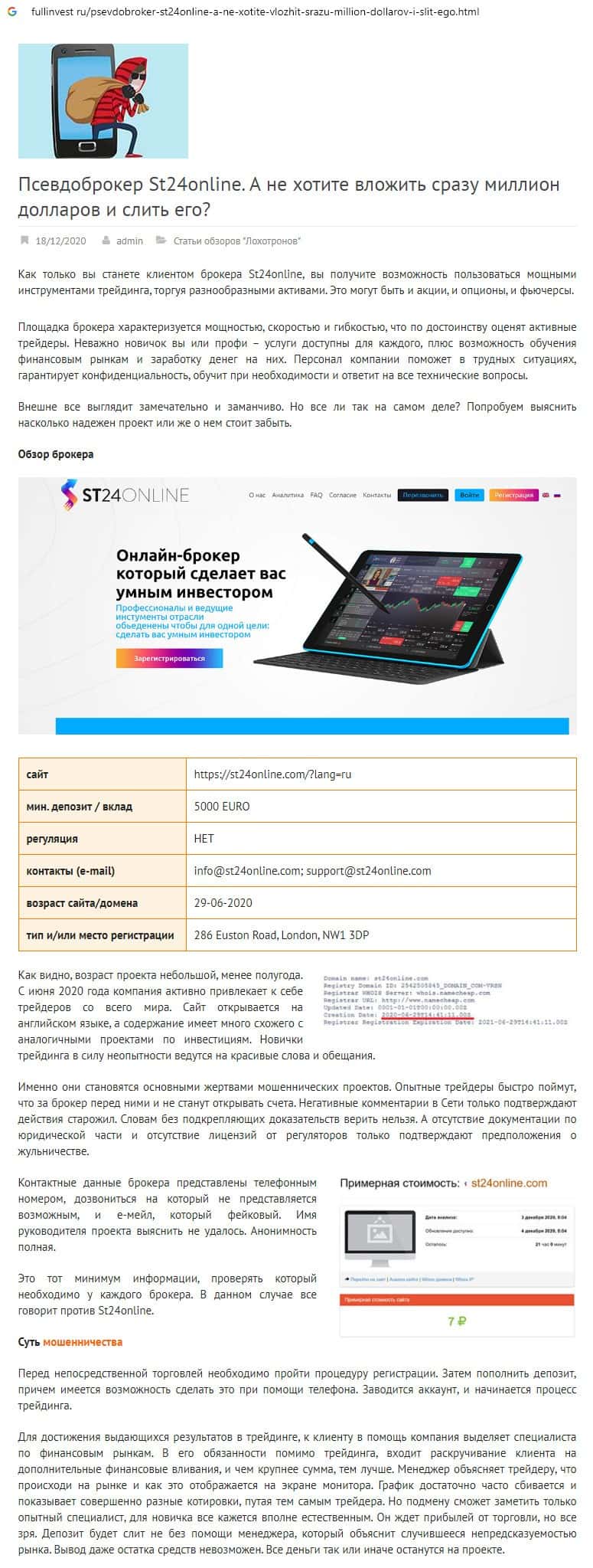 - Информация о псевдо-брокерской организации ST24Online