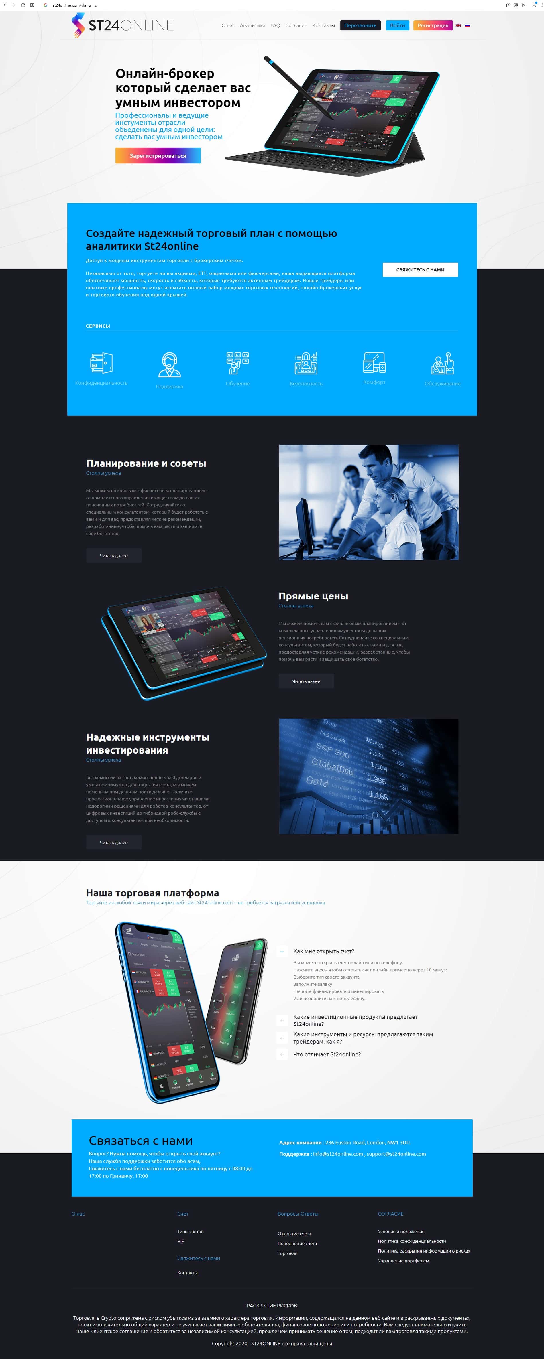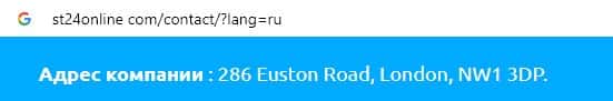 Сведения о месте регистрации ST24Online фальшивы, так как большинство мошеннических проектов у себя на сайте указывают адрес в Лондоне для приманки очередного лоха.