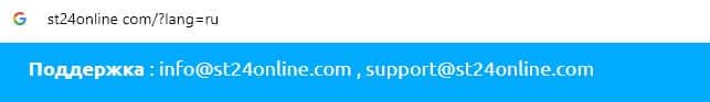 Лохотронщики СТ24Онлайн на своем официальном интернет-ресурсе указывают два адреса электронной почты, а именно: