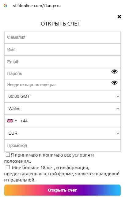 Связываться с жульнической конторой СТ24Онлайн не рекомендуем, поскольку возможность вывести свои денежные средства с торгового счета не доказана.