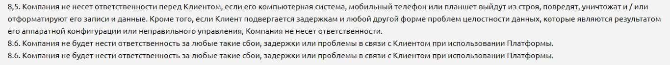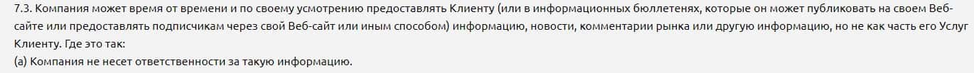 Мошенники СТ24Онлайн в своем клиентском соглашении указывают информацию о том, что их контора не обязана консультировать пользователей своего сайта.