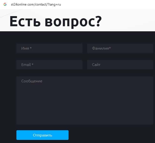 Аферисты ST24Online не выходят на связь, что говорит об отсутствии технической поддержки на сайте данной мошеннической организации.