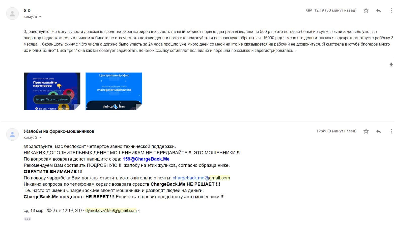 Подробная жалоба на StarTupShow от клиента, потерявшего 12 тысяч рублей