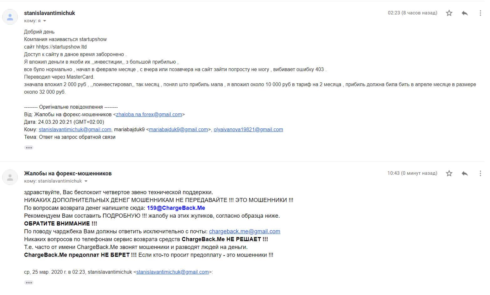 - Жалобы пострадавших клиентов мошеннического проекта StarTupFund, ныне имеющего сайт-клон StarTupShow Ltd