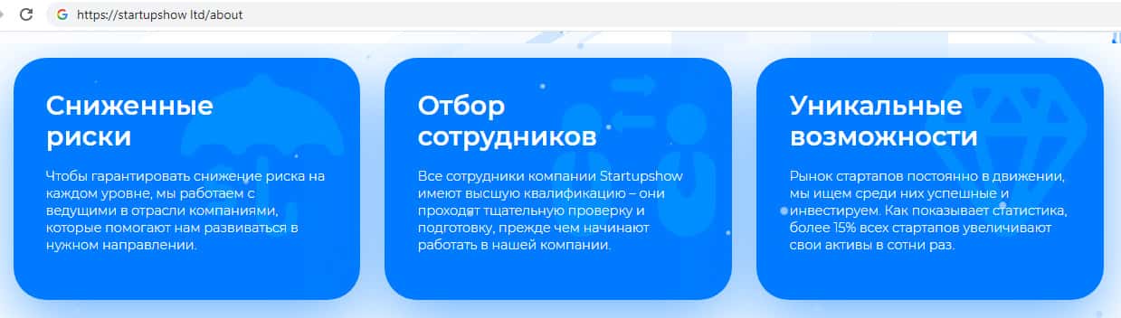 - Обзор официального сайта мошеннической организации StarTupShow Ltd