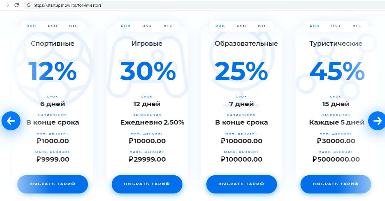 - Мошенники StarTupShow Ltd вешают лапшу на уши о том, будто прибыль клиента зависит от выбора тарифного плана