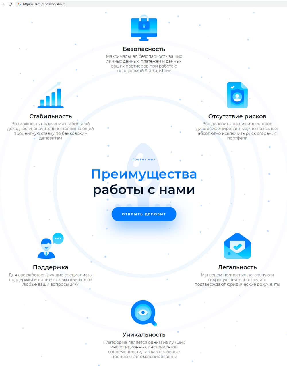 Обзор официального сайта мошеннической организации StarTupShow Ltd