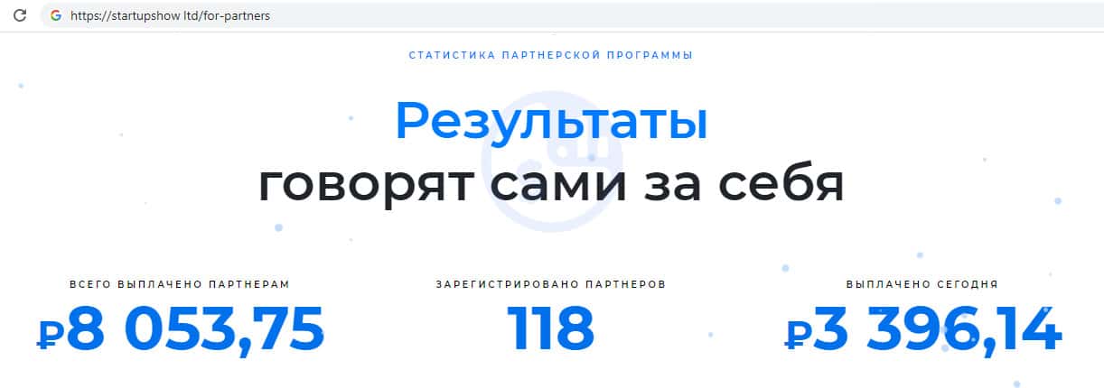 - Статистические данные на сайте жульнической конторы StarTupShow Ltd