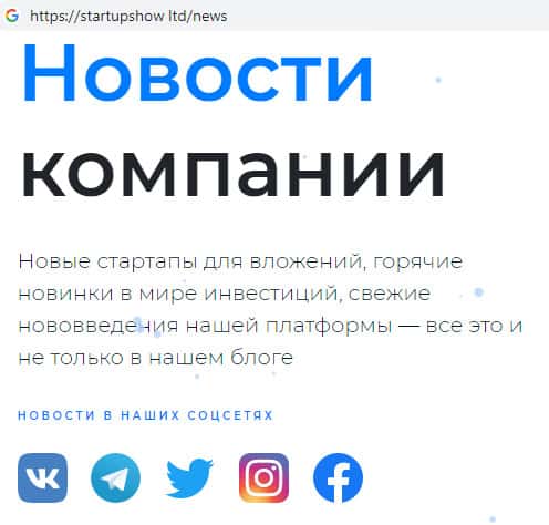 - Аферисты StarTupShow Ltd создали страницу в Российской социальной сети Вконтакте