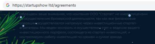 - Лицензия инвестиционного лохотрона StarTupShow Ltd