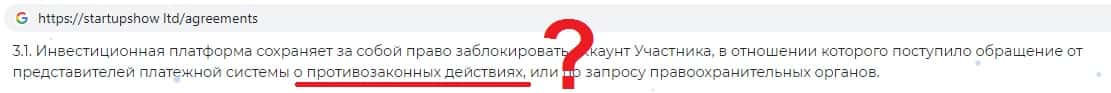 - Аферисты StarTupShow Ltd заранее подготовили ответы на часто задаваемые вопросы