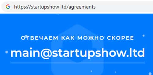 - адрес электронной почты инвест-лохотрона: main@startupshow ltd