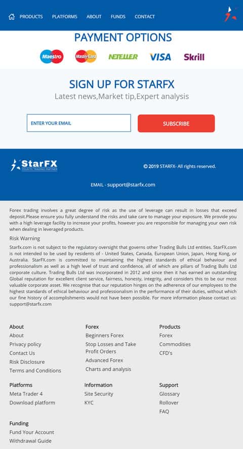 Именно так. Ни у одного официального регулятора сам сайт СтарФХ нигде и в помине не указан, что делает эту контору попросту неправомерной, а значит, как говорят и наши англоязычные коллеги, вы можете потерять всё вложенное. При сотрудничестве с шарашкиной конторой StarFX, вне сомнений, это точно случится, а самих жуликов, в виду их анонимности, как , так и заставить ответить за их преступления, будет попросту найти будет невозможно.