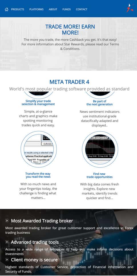 Сайт лохотрона СтарФХ, который исключительно открывается только через ВПН с азиатскими айпишниками, довольно обширный и своими заманухами ничем не уступает от сайтов их конкурентов. Здесь и бонусы, которые нужно потом отрабатывать, и липовые награды в выдуманных номинациях, и всюду предупреждения, что есть большая вероятность слива депозита.