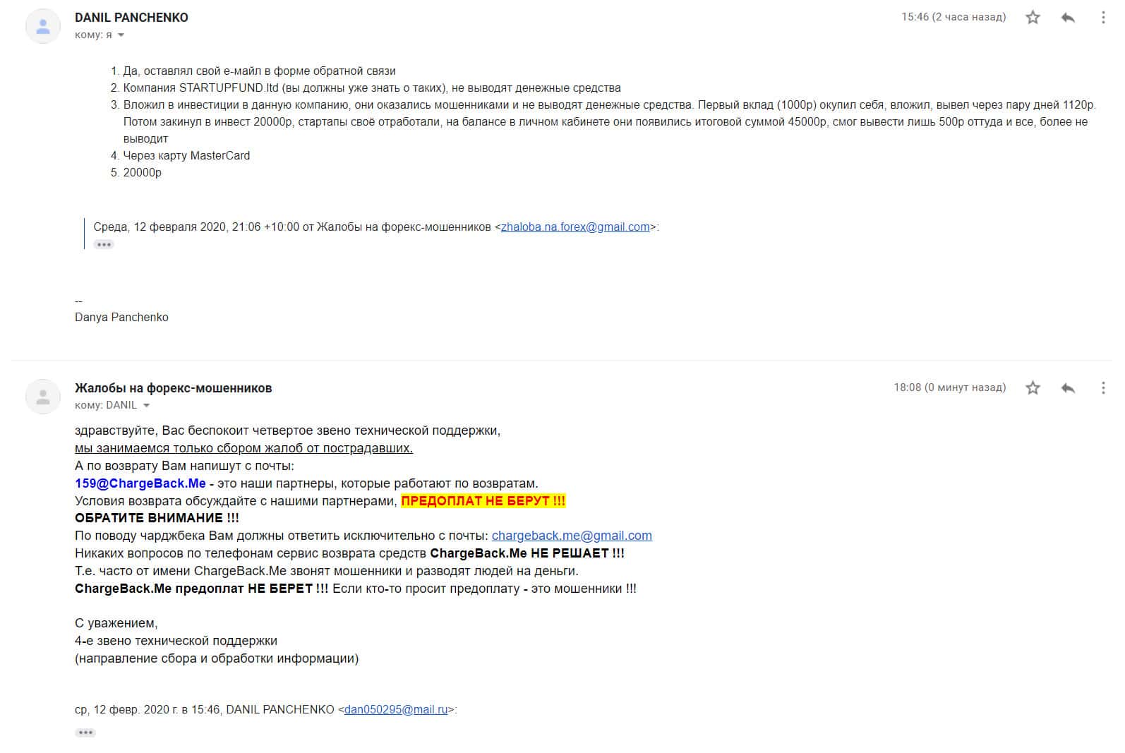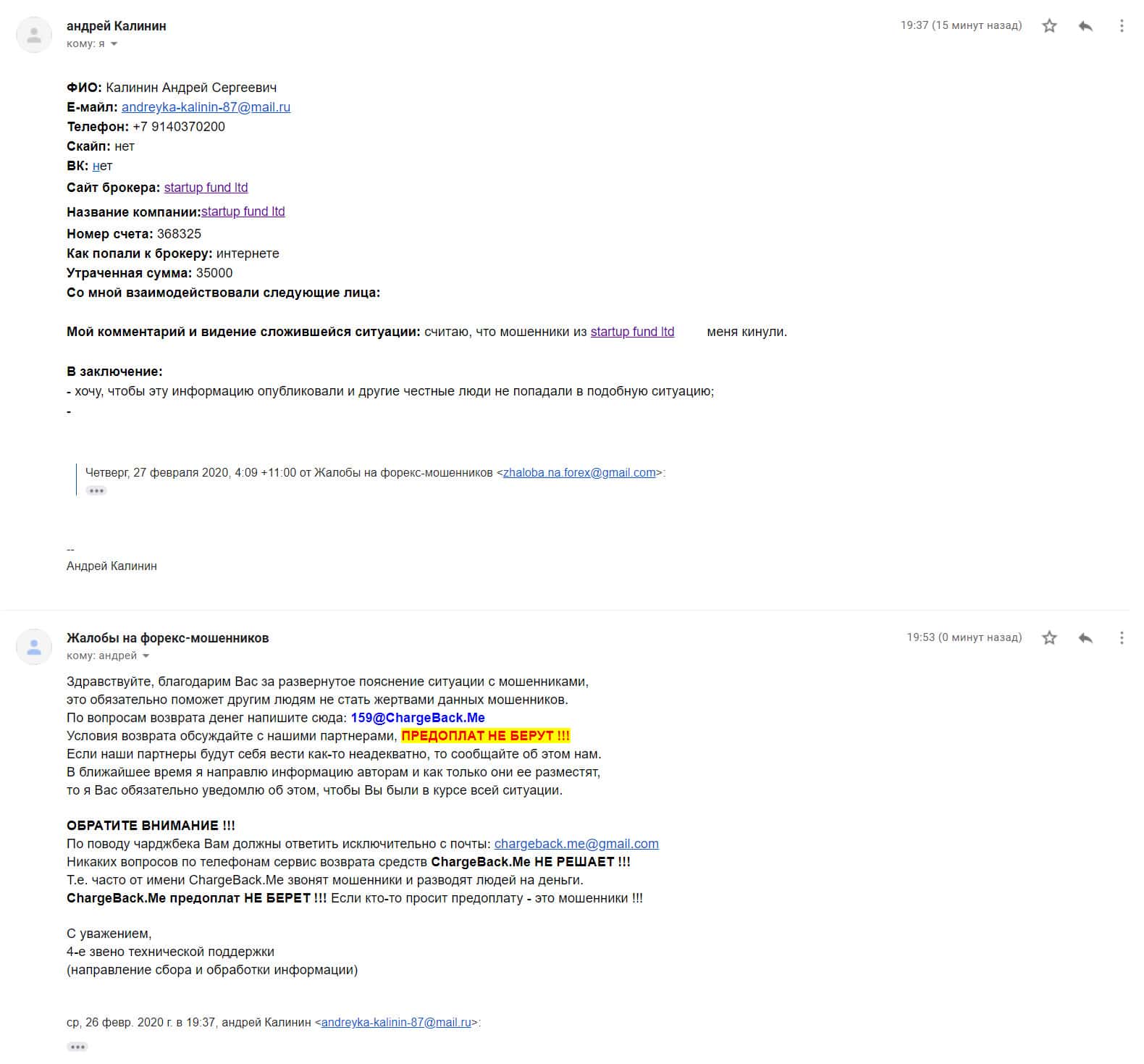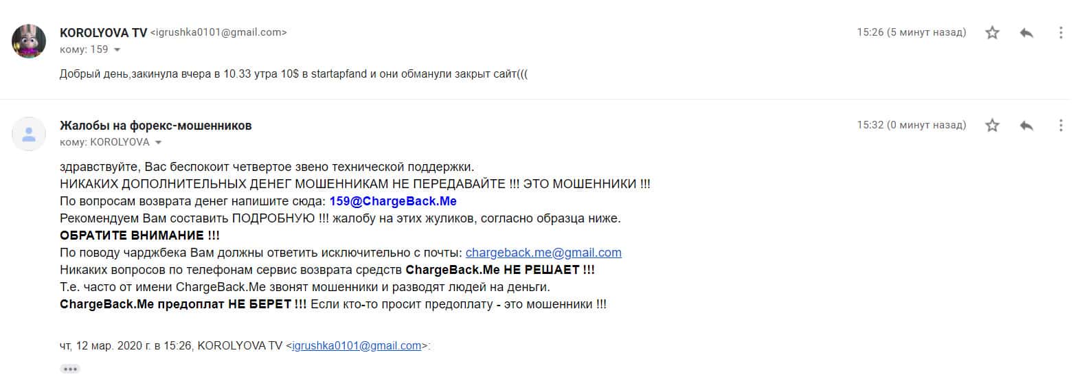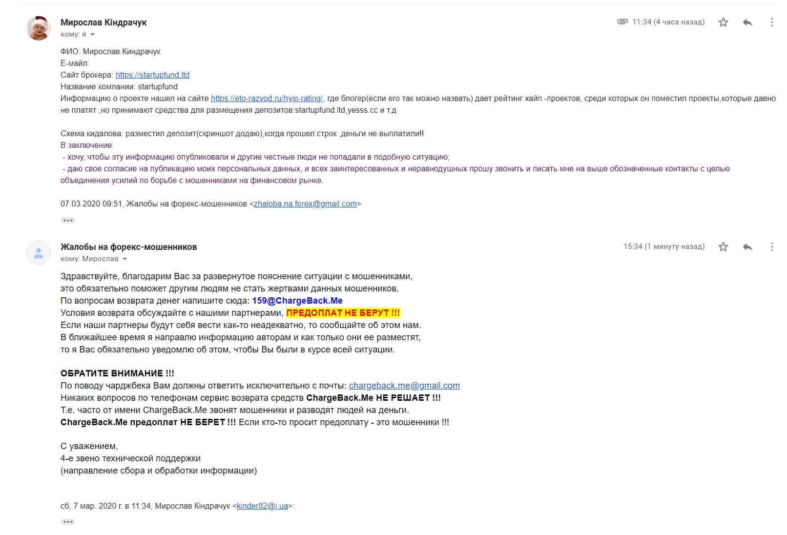 - Жалоба на мошенников StartupFund от очередного облапошенного клиента