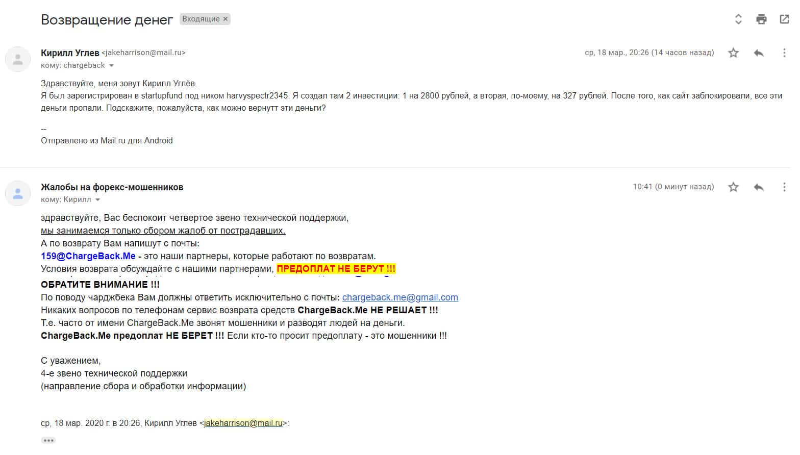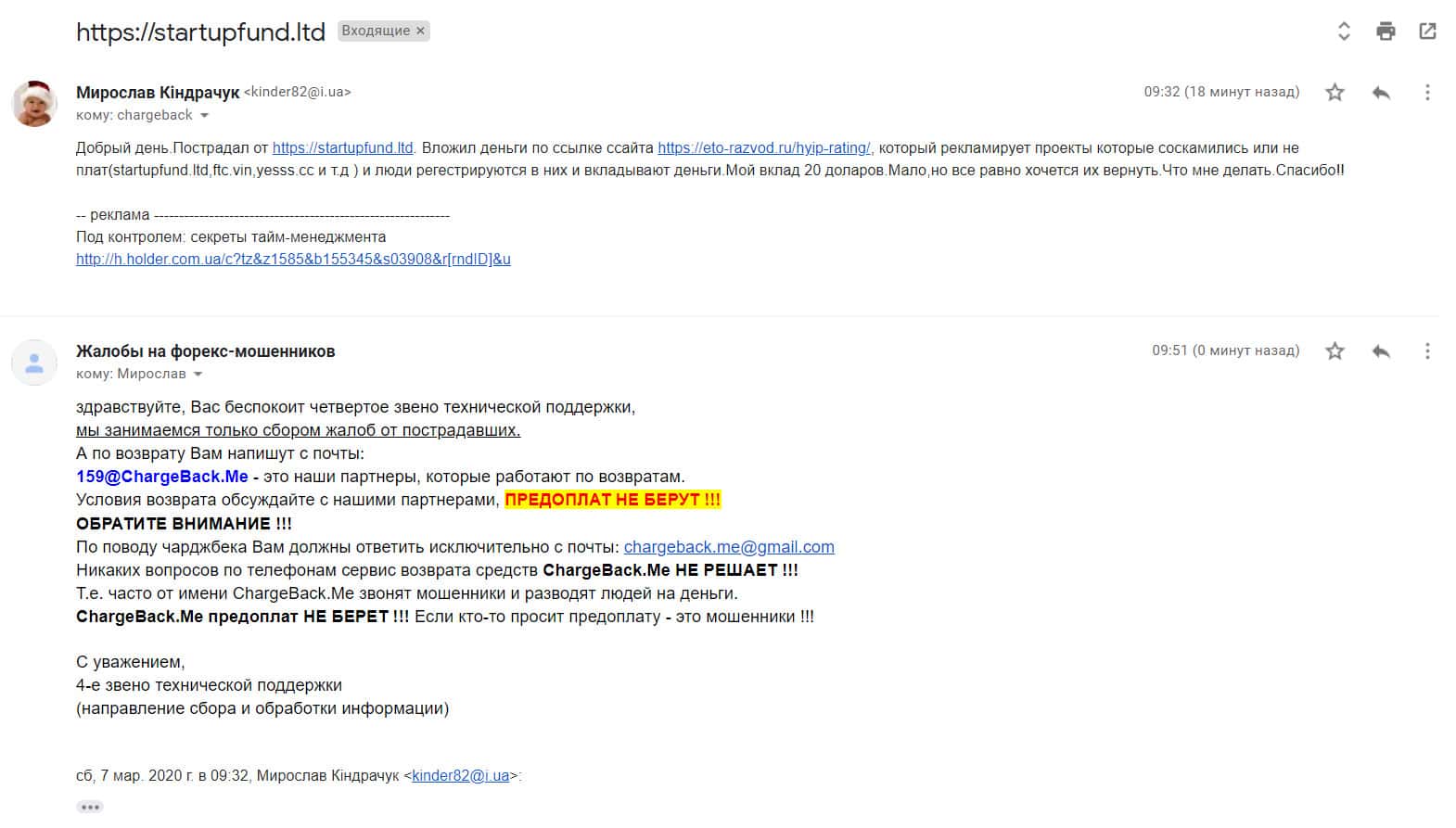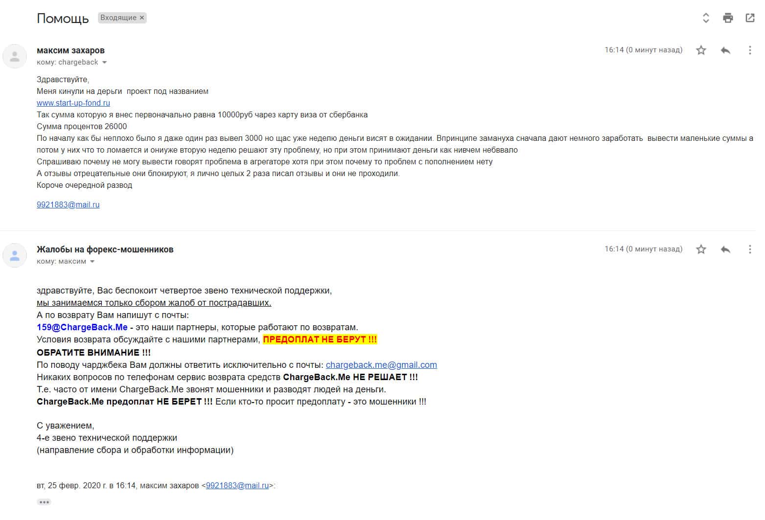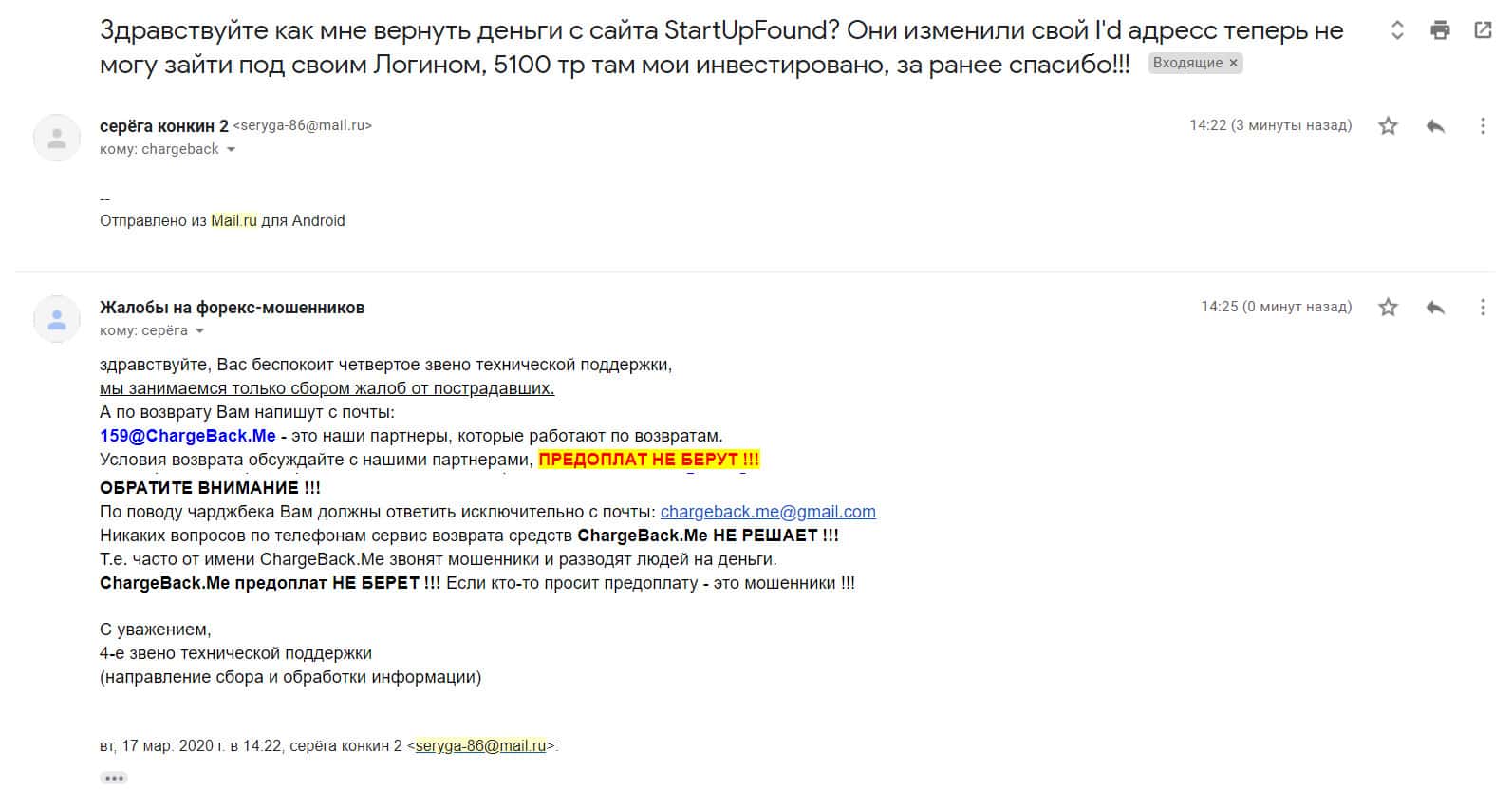 - Жалоба на мошенников StartupFund от очередного облапошенного клиента