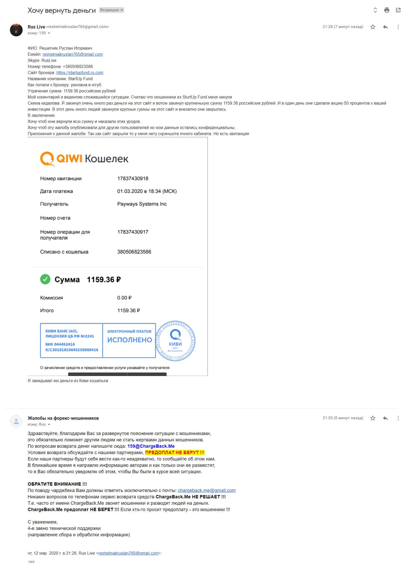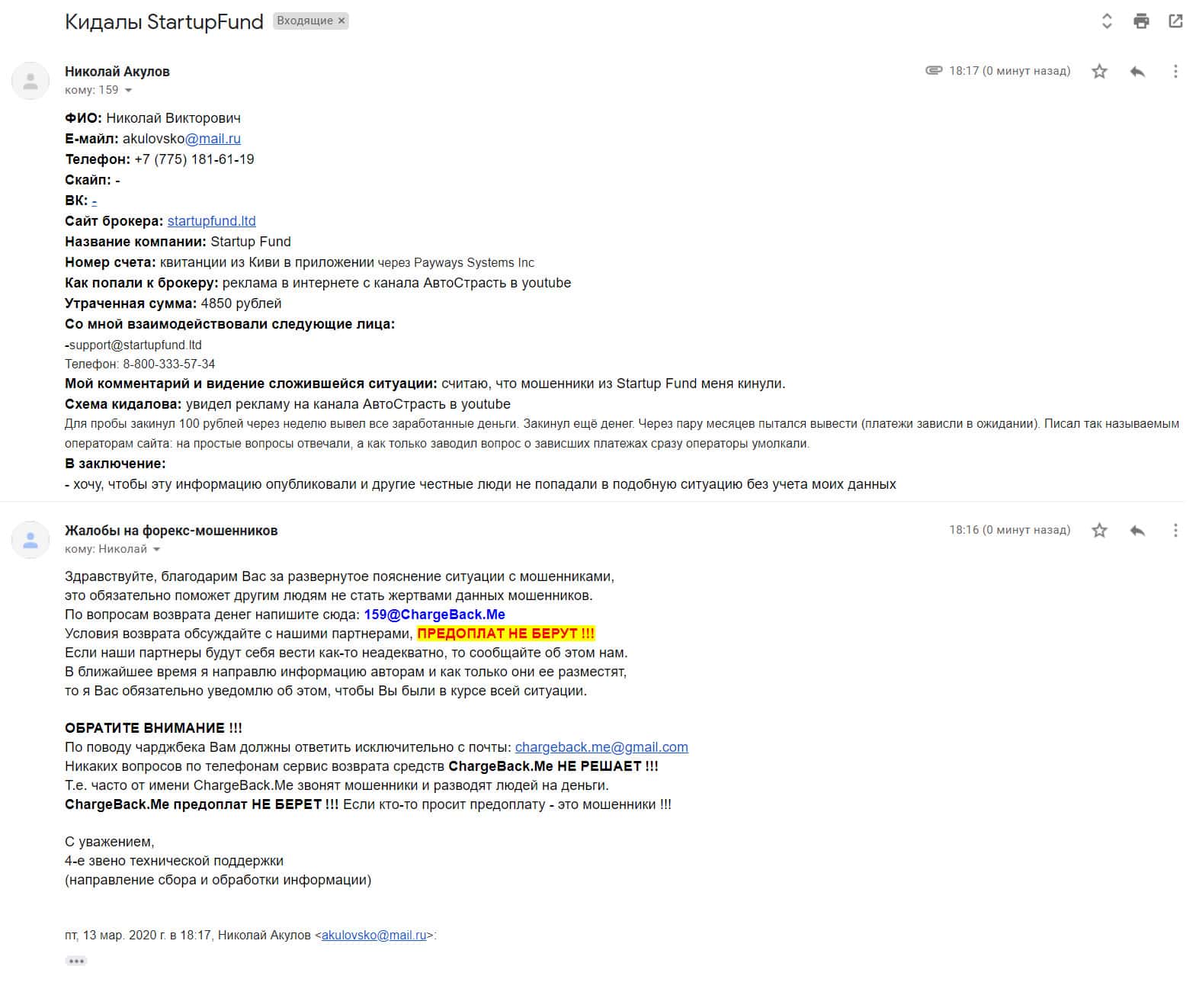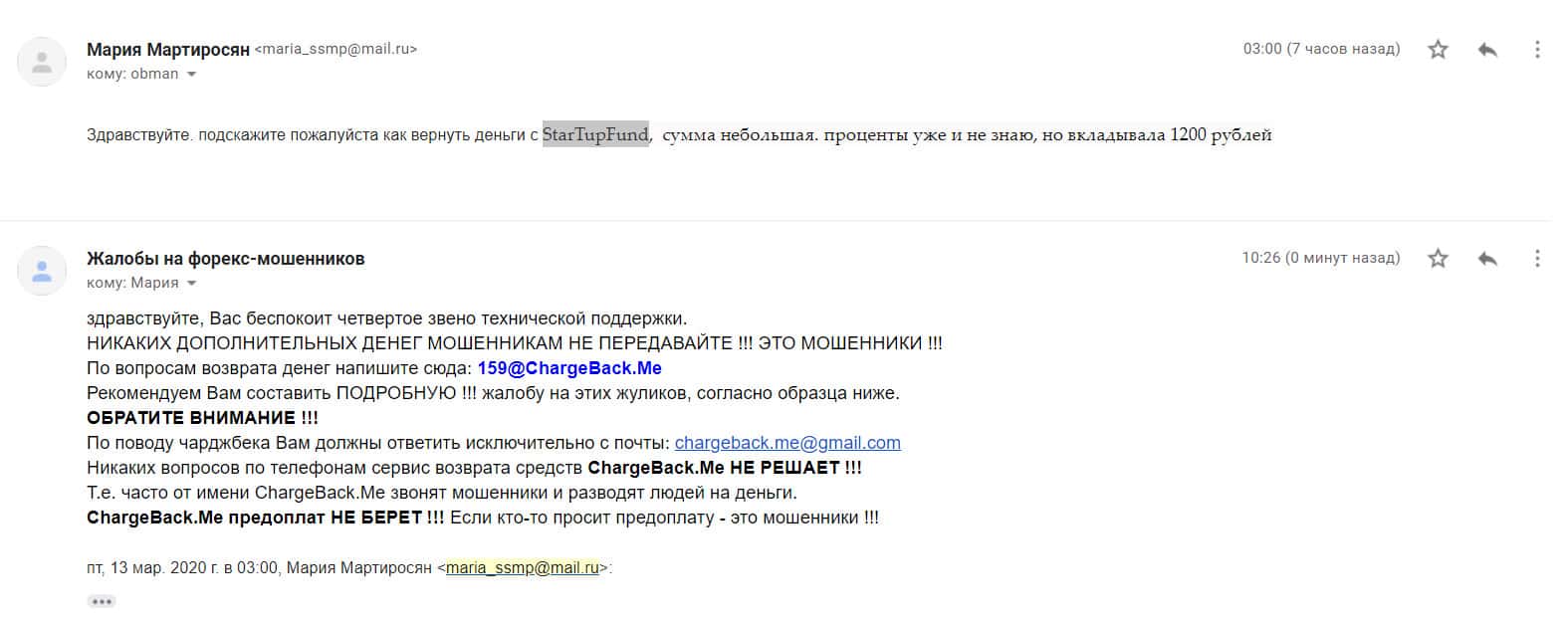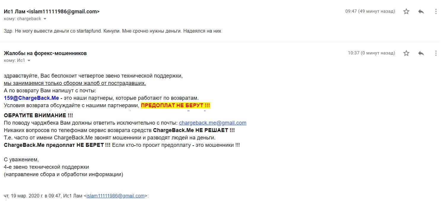 - Очередной обманутый клиент лохотрона StarTup Fund пытается вернуть деньги