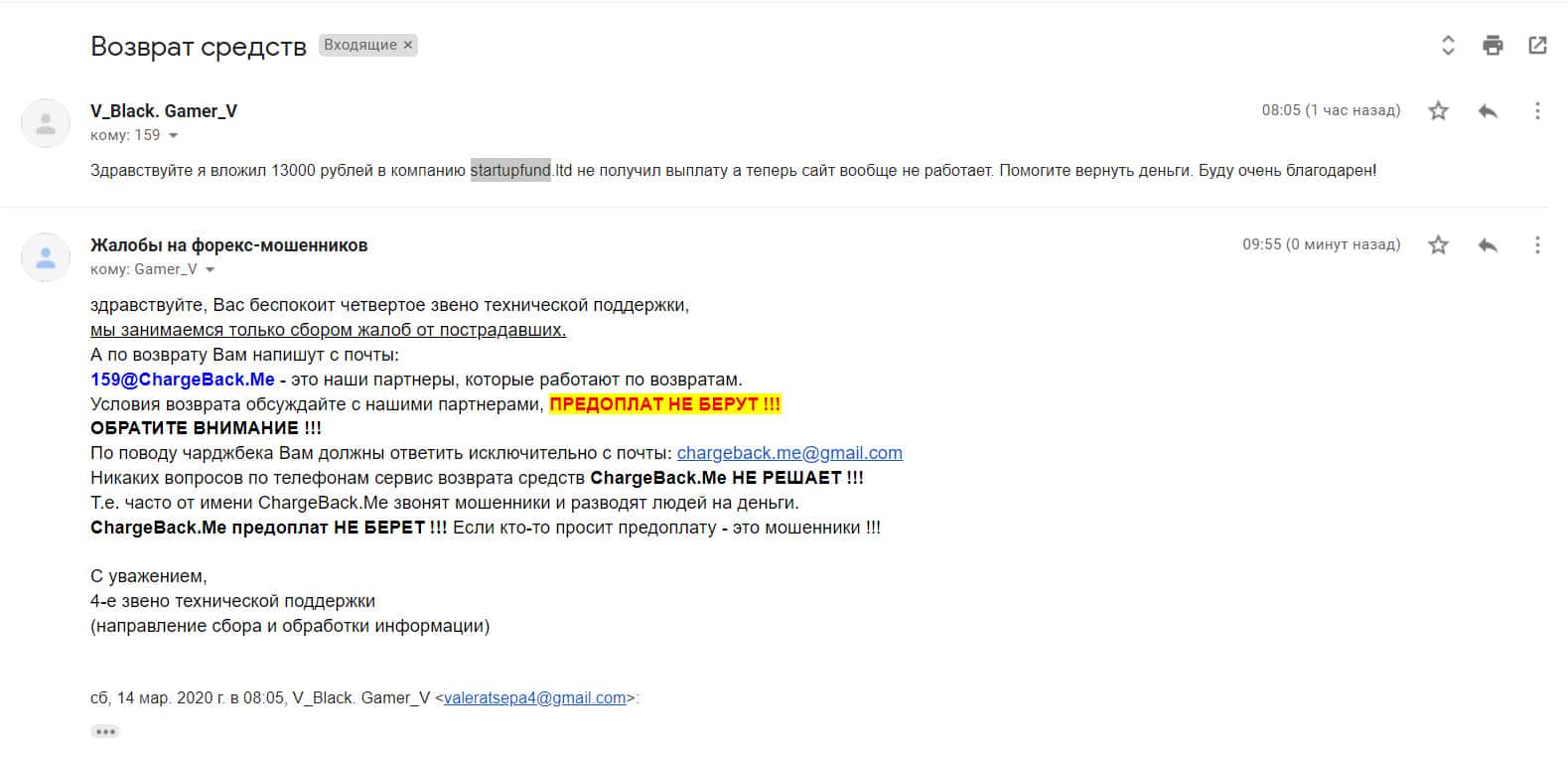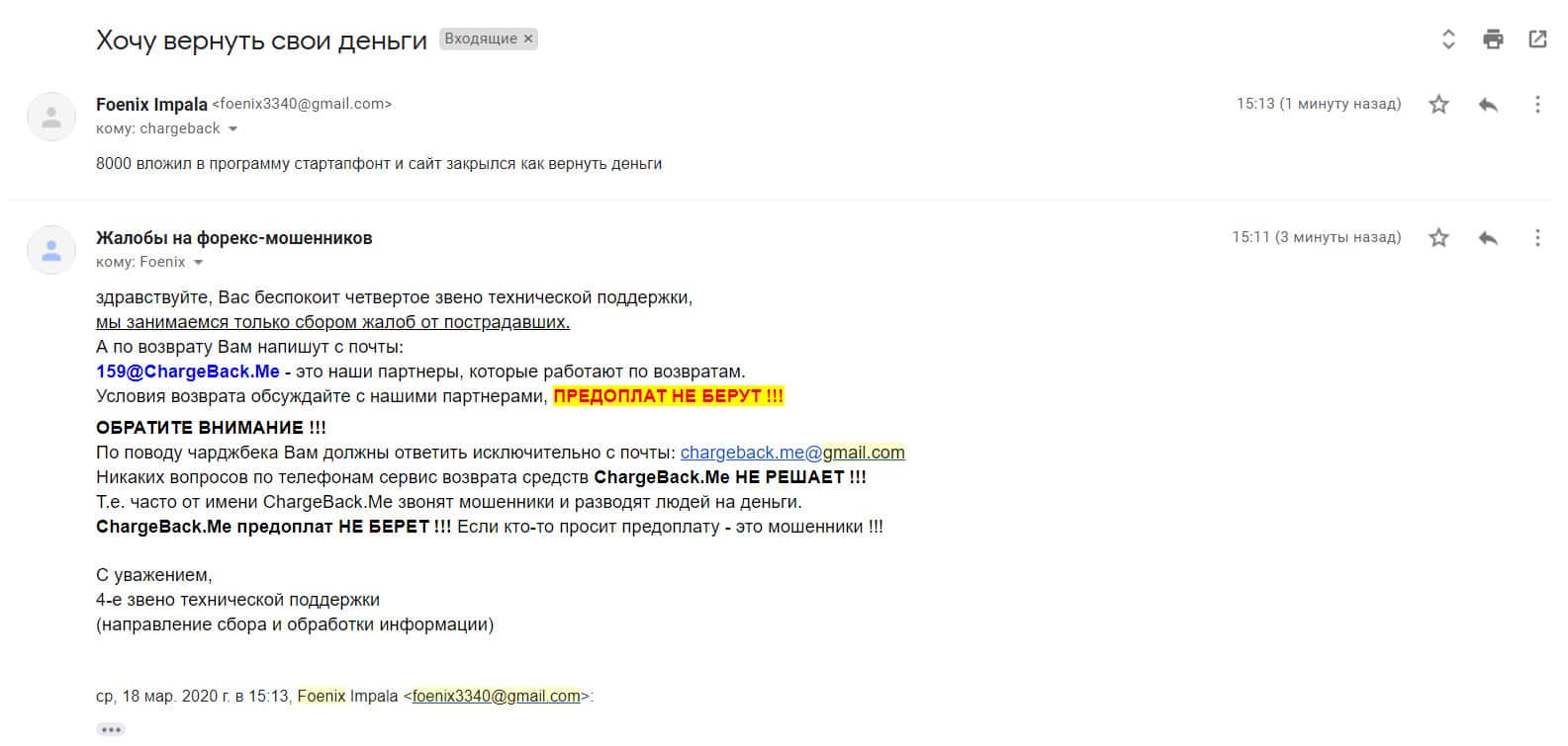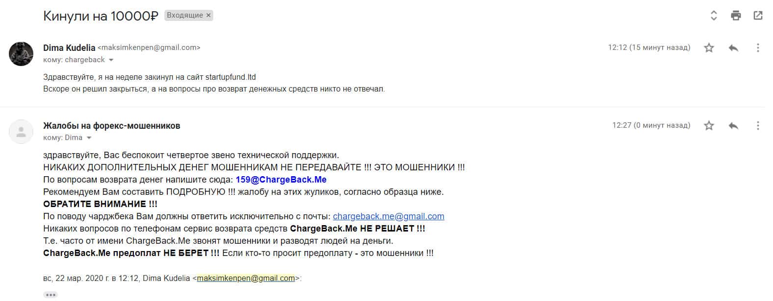- Очередной обманутый клиент лохотрона StarTup Fund пытается вернуть деньги