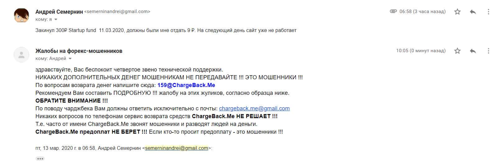 Жалоба на StartupFund от клиента, утратившего 500 рублей