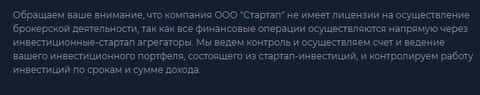 Мошенники StarTupFund указали у себя на сайте, что они не имеют лицензии на осуществление брокерской деятельности. Вот в этом они и прокололись, так как позиционируют себя как площадку для стартапов, а здесь упоминают брокерскую деятельность. Поэтому эту шарагу, которая не определилась чего она хочет, лучше обойти стороной.