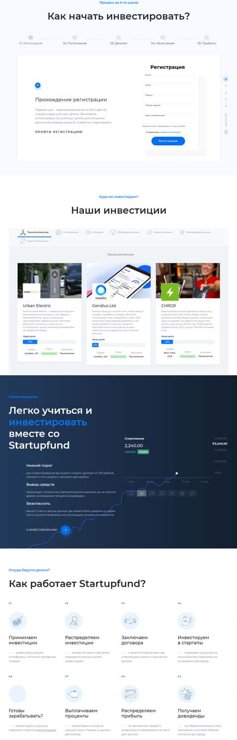 Из тех предложений, которые размещены на ресурсе шараги Стартап Фонд, можно сделать вывод, что это никакая не инвестиционная площадка для инвестирования в стартапы. Это обычный хайп, за основу которого взята данная идея. Жулики используют сверхпроценты для привлечения как можно большего количества любителей халявы.