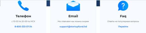 Контактные данные для связи с жульем StarTupFund, предоставлены на официальном ресурсе в качестве телефона, электронной почты и адреса регистрации. Чтобы вы не попались на этот развод, мы решили оставить эту информацию здесь и, опираясь на нее, вы будете знать, что лучше трубку от этого номера не брать:
