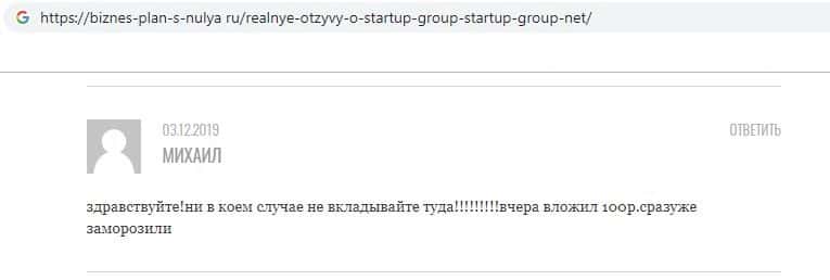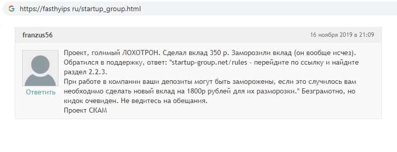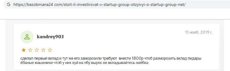 - Проект Startup-Group является откровенным лохотроном - не видитесь!