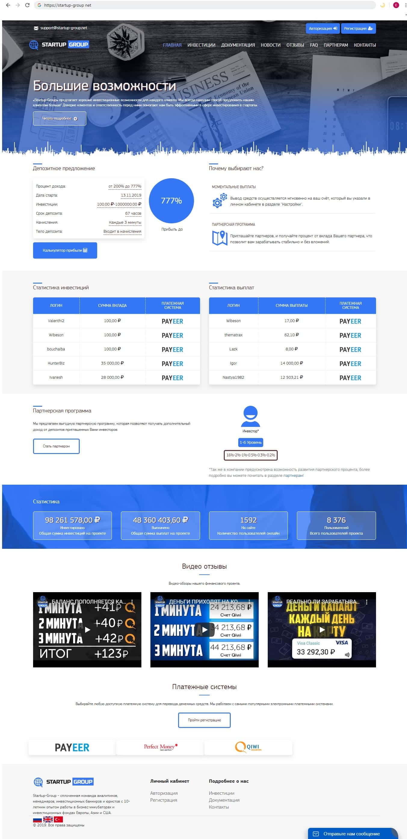 - Хайп-проект Startup-Group отказывается выводить даже маленькие суммы