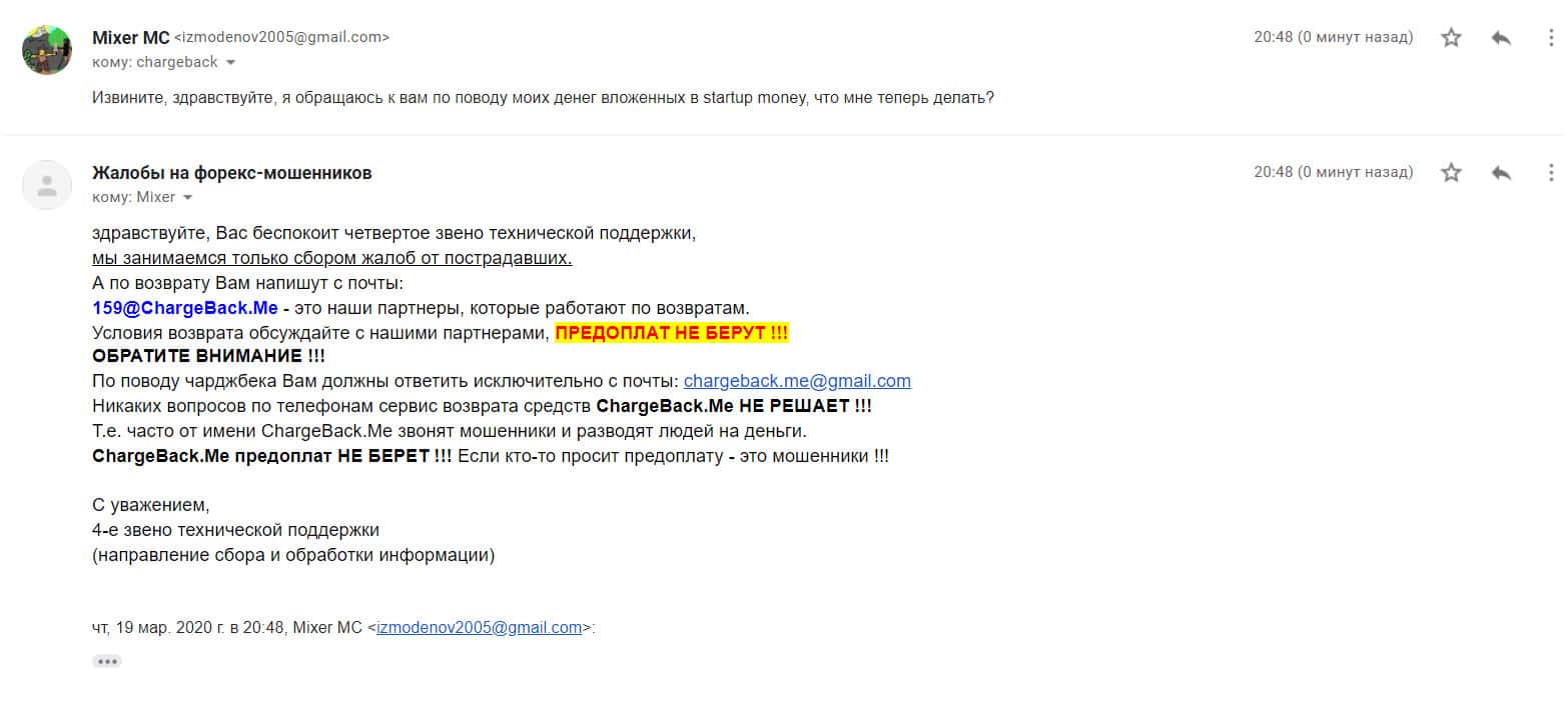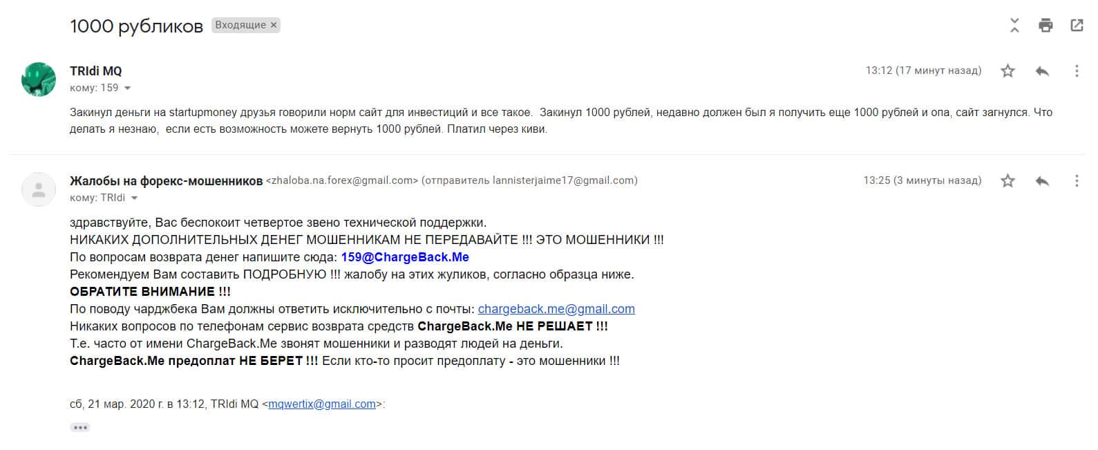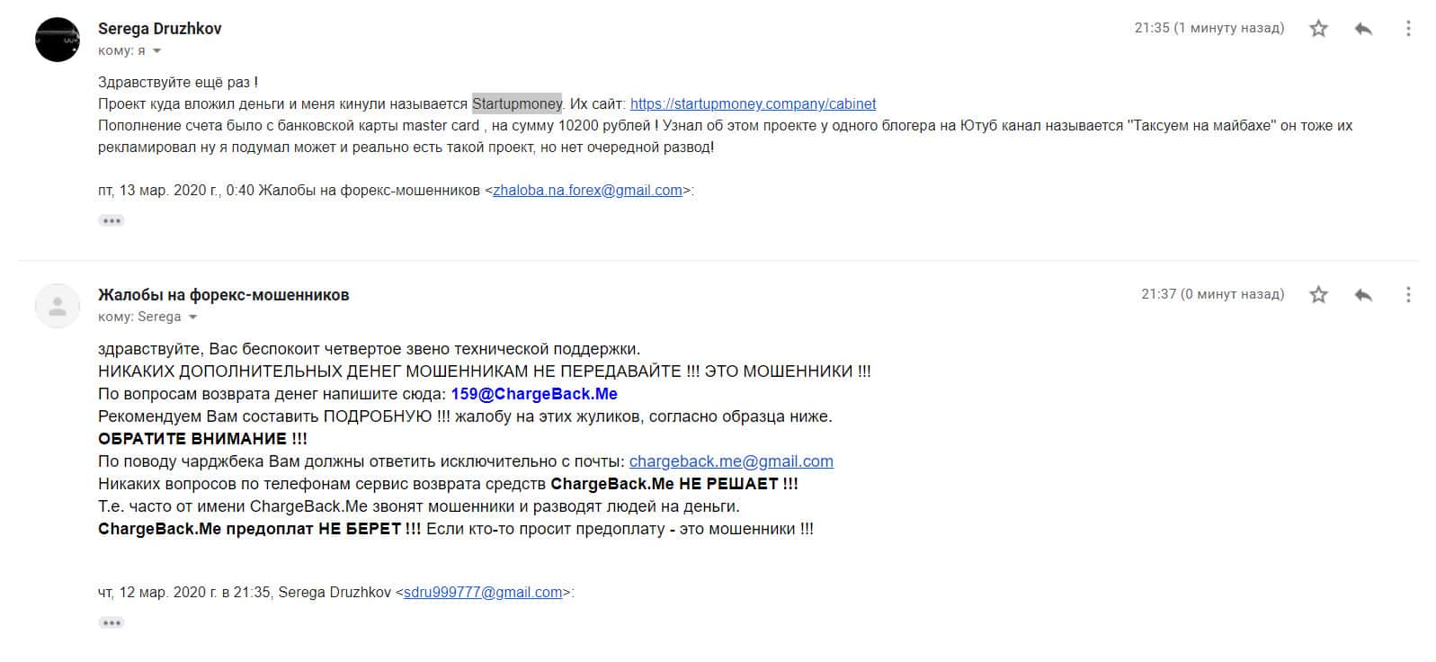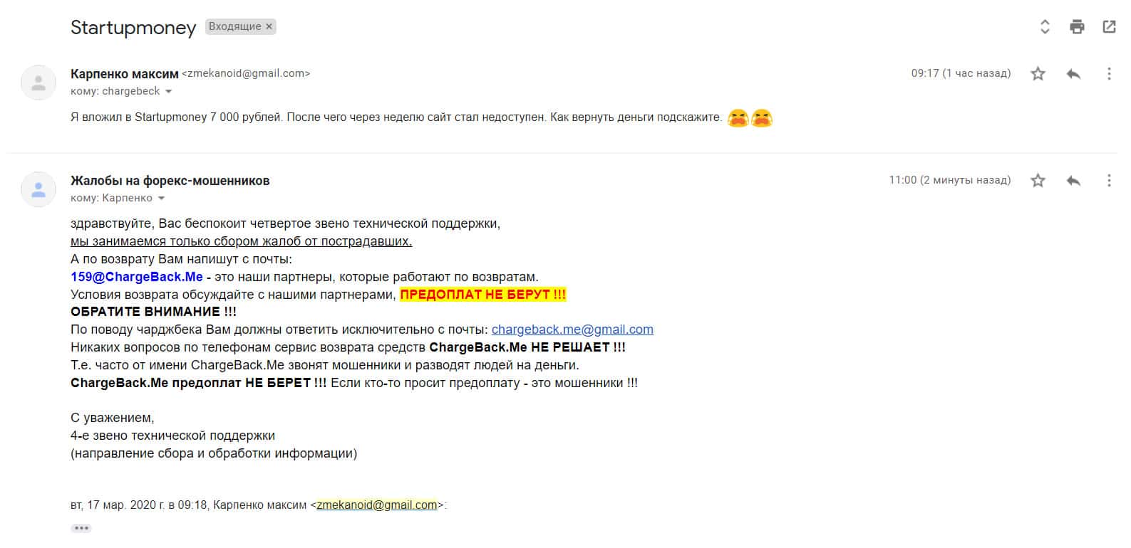 - Жалоба на scam-проект StartupMoney от клиента, потерявшего 7 000 рублей