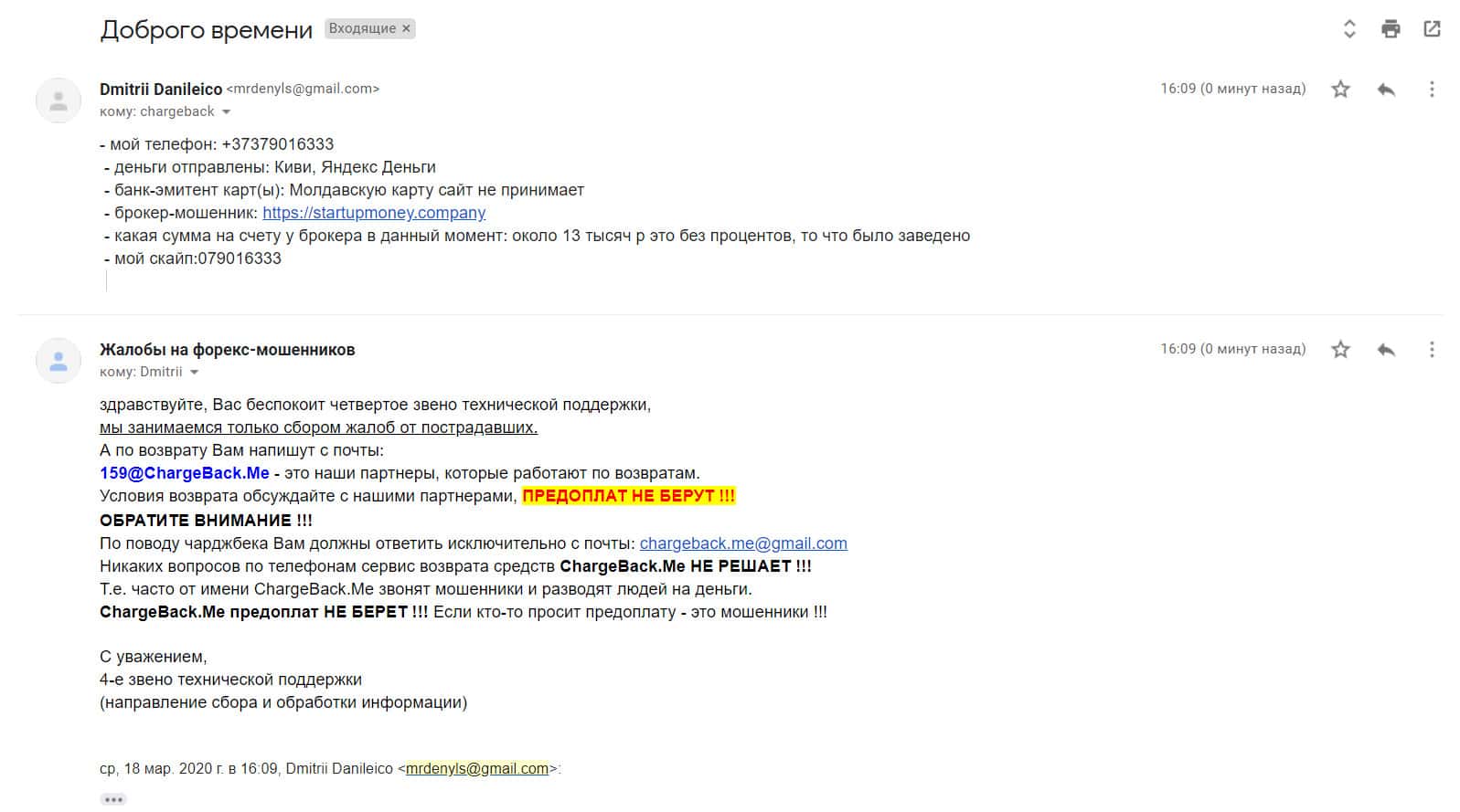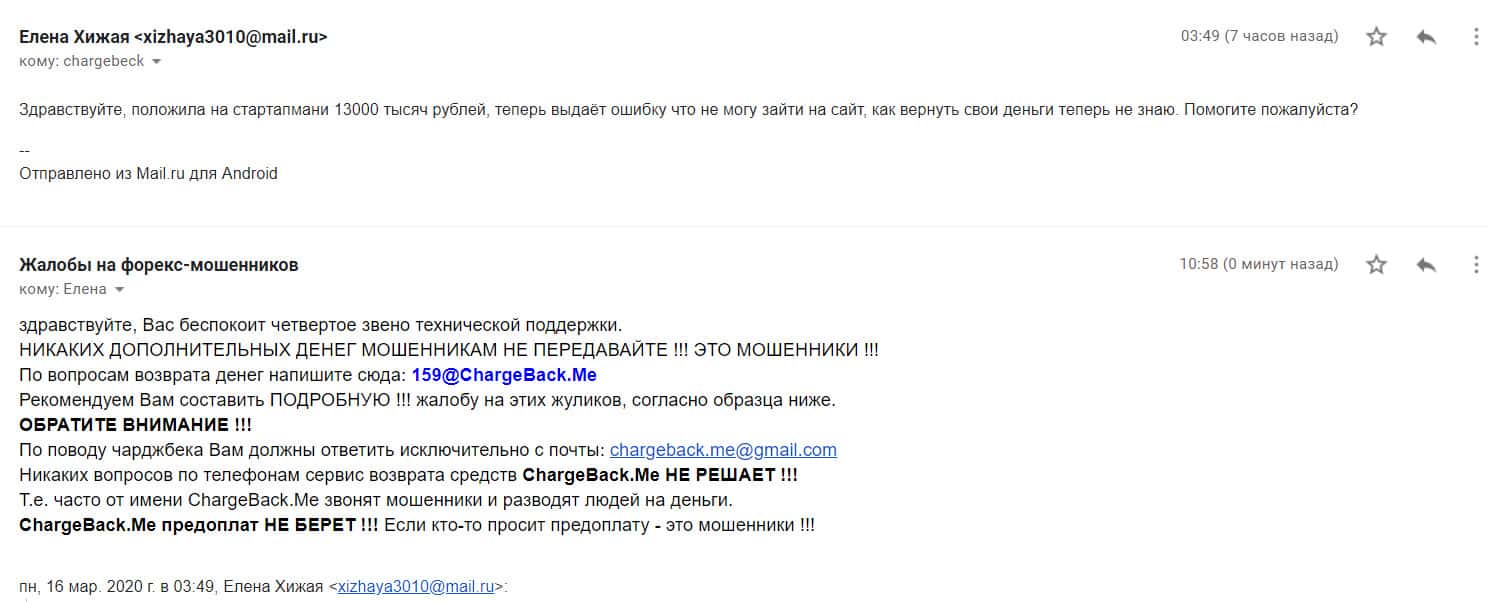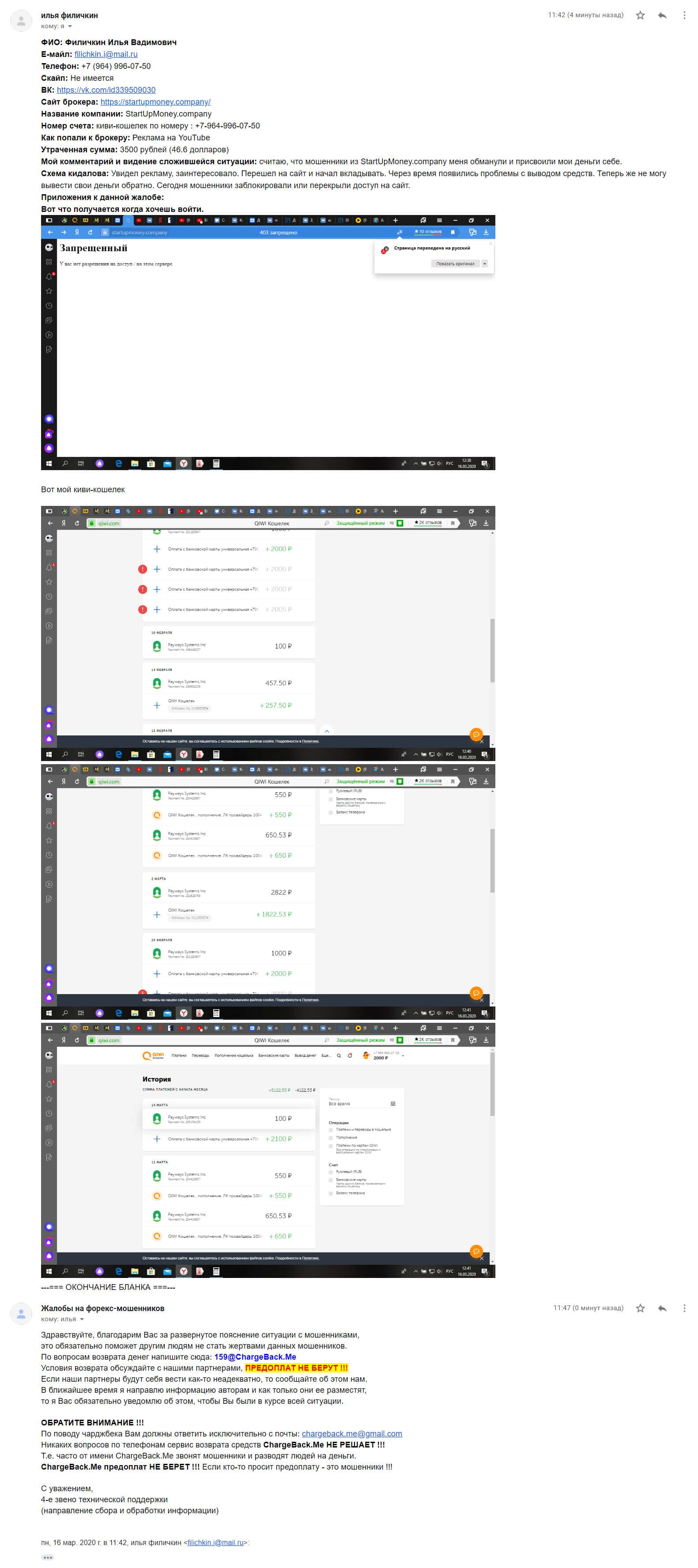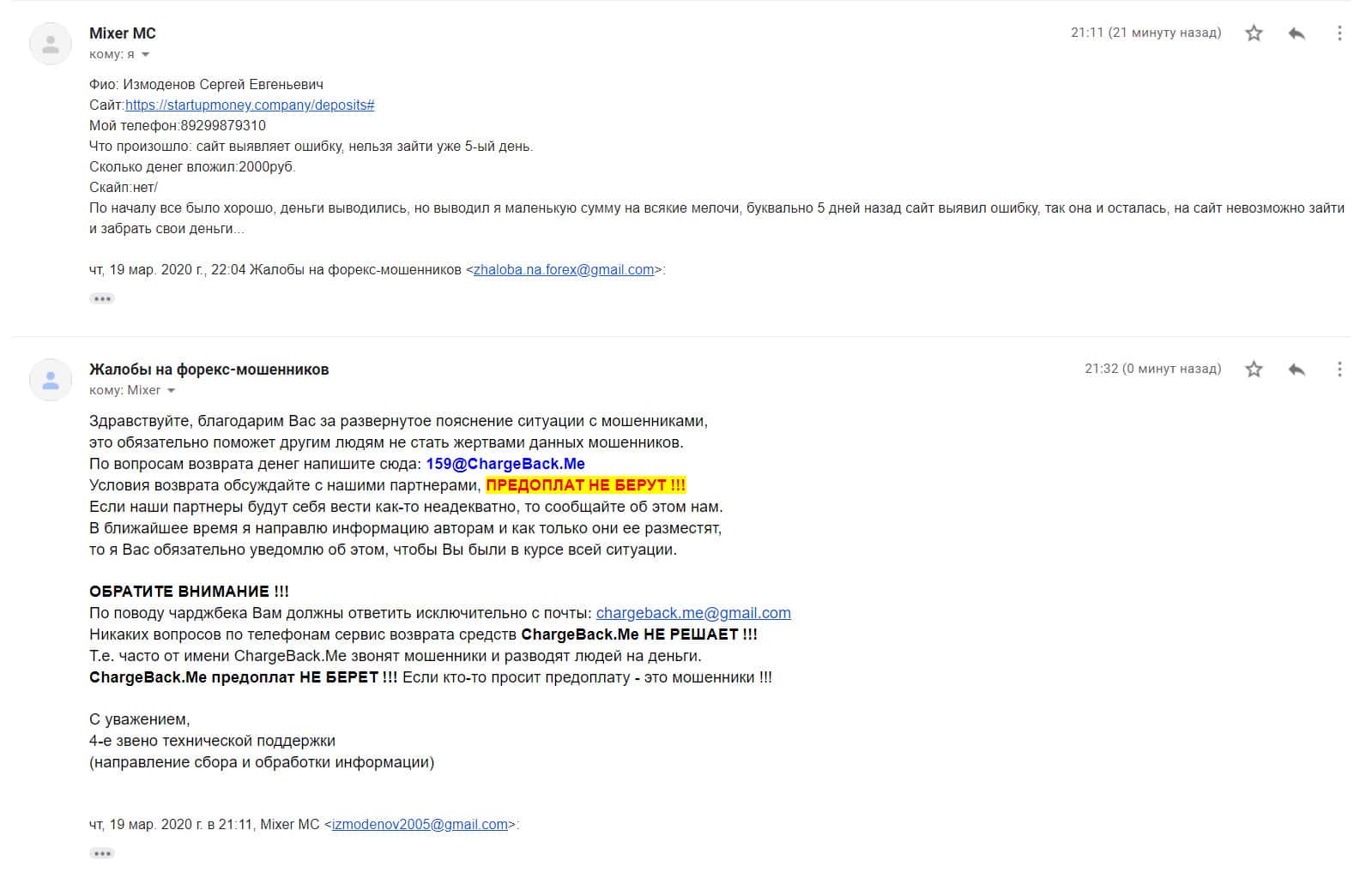 Подробная жалоба на мошенническую компанию СтартапМани от клиента, утратившего 2000 рублей