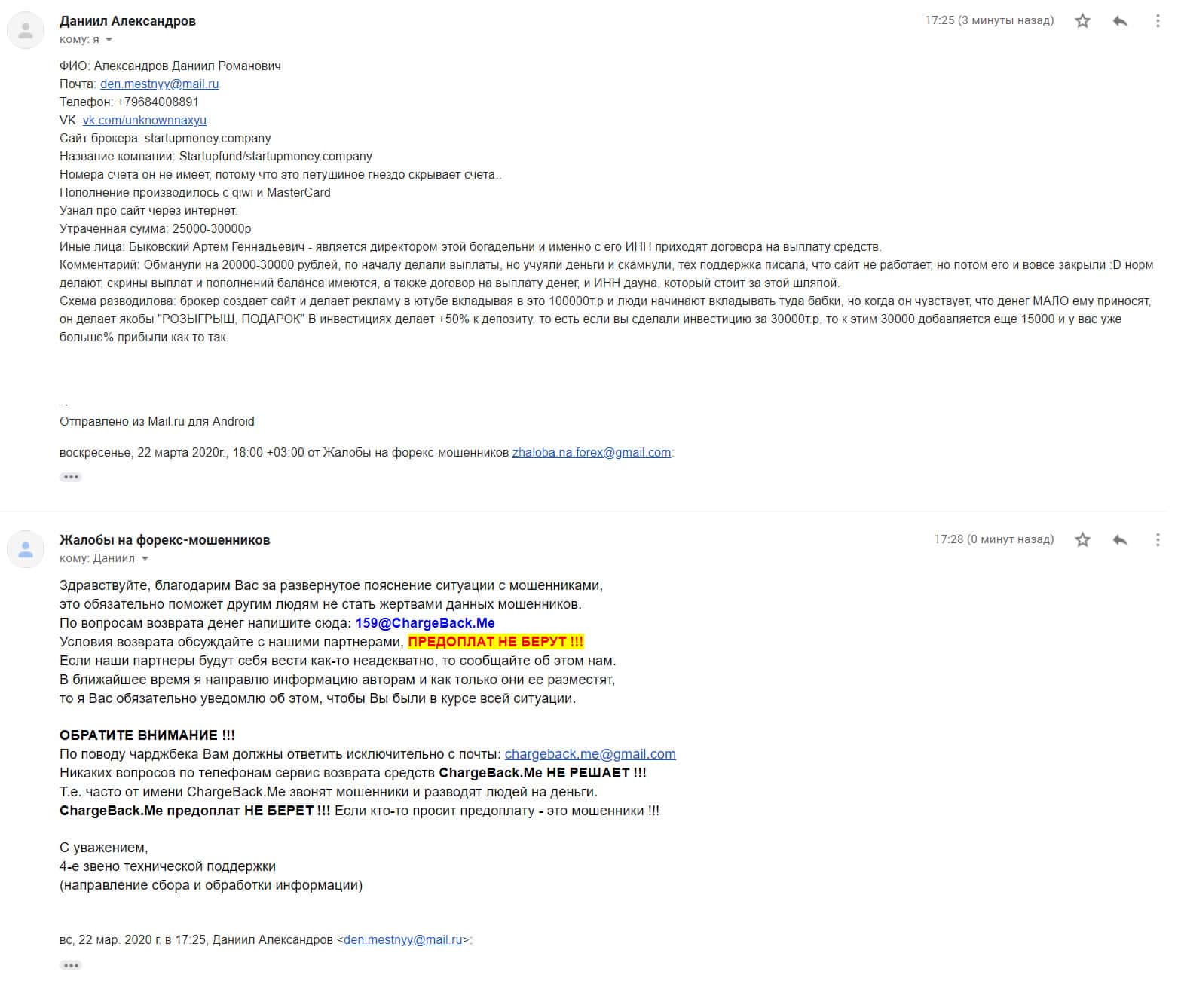 Ниже представлена первоначальная жалоба, которая была прикреплена в письме, которое прислал человек, ставший жертвой мошенничества StartupMoney Company.
