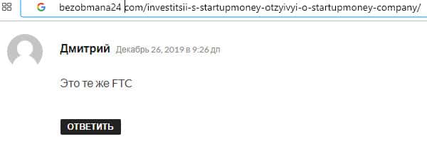 - Человек сравнивает контору Стартап Мани с хайпом FTC