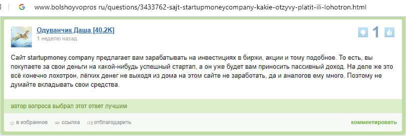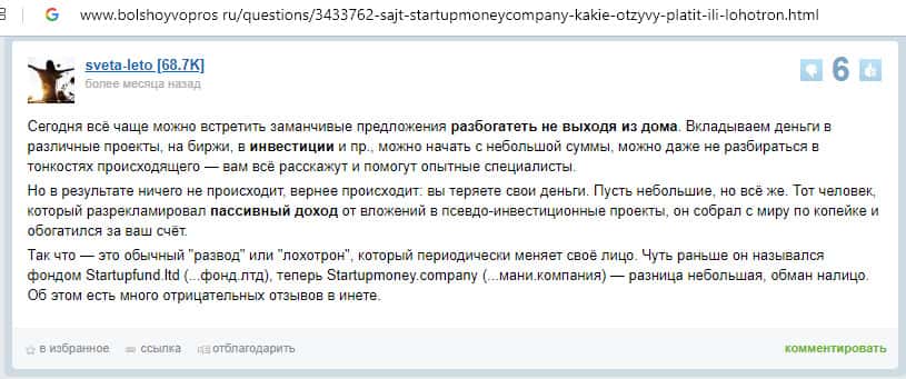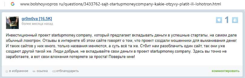- Еще один портал против сотрудничества с лохотроном Стартап Мани