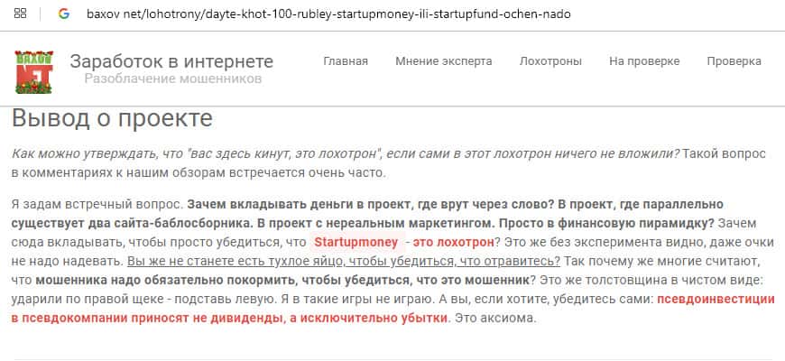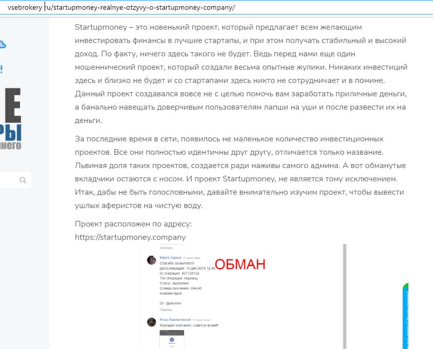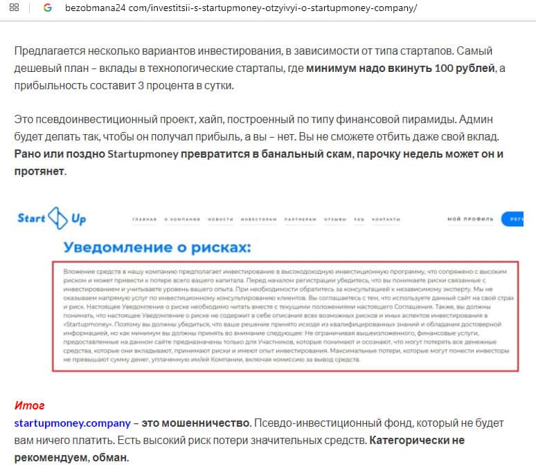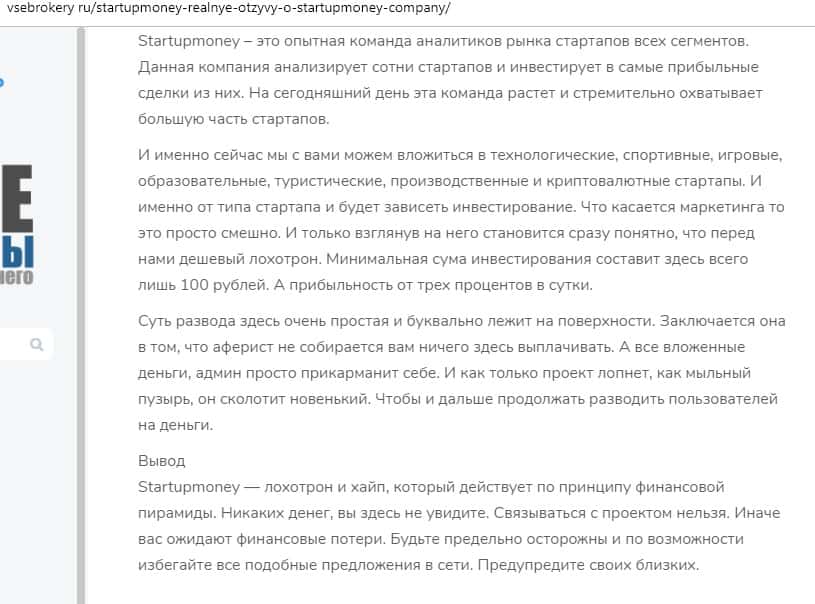 - Оценка эксперта касательно деятельности жулья Стартап Мани