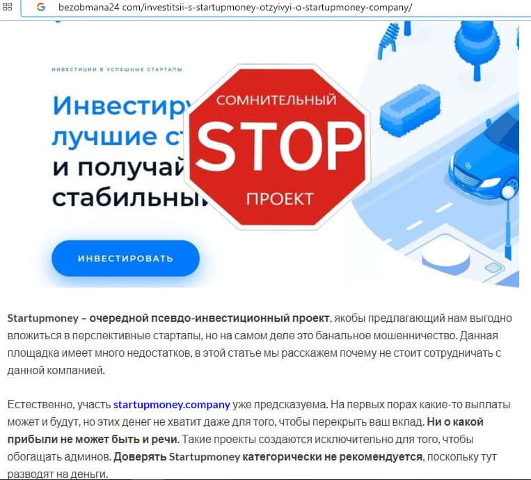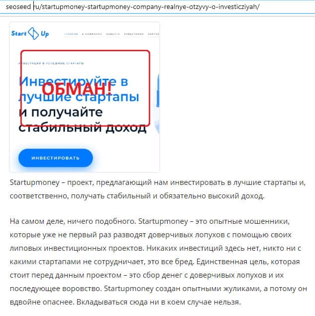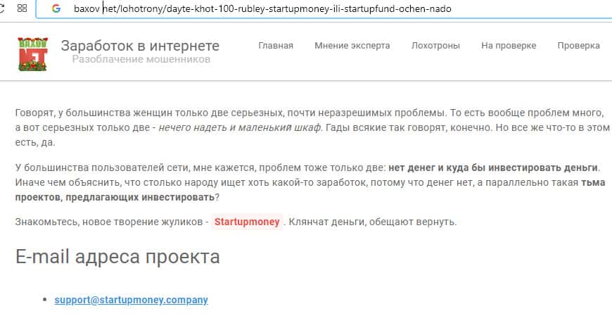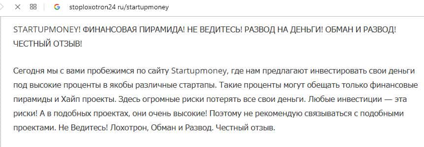 - Еще одна статья о шарлатанской организации StartupMoney Company