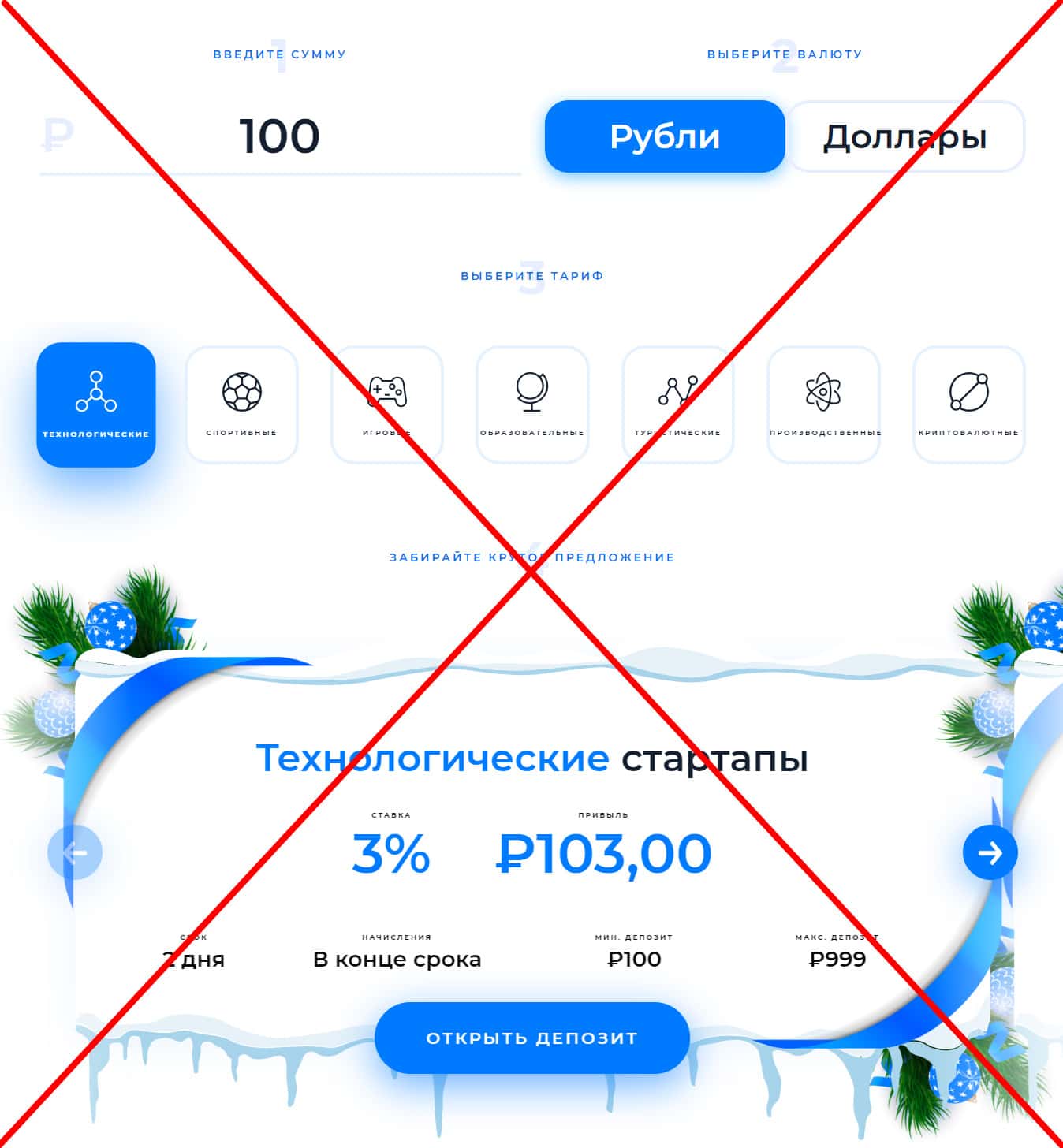 Аферисты Стартап Мани предлагают несколько вариантов инвестирования своим клиентам и самый дешевый план начинается со 100 рублей. Рано или поздно, какую-бы вы сумму не вложили, они превратятся в банальный скам, а потом попросту все сольется. Поэтому вся эта кухня - банальное мошенничество.