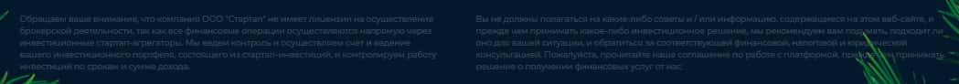 Так же стоит отметить свой факт, что лохотрон Стартап Мани предлагает всем инвестировать деньги под высокий процент, который они гарантируют. Любые инвестиции это риски - но не при такой доходности. Данные аспекты наводят на мысль, что здесь все деньги можно только потерять.