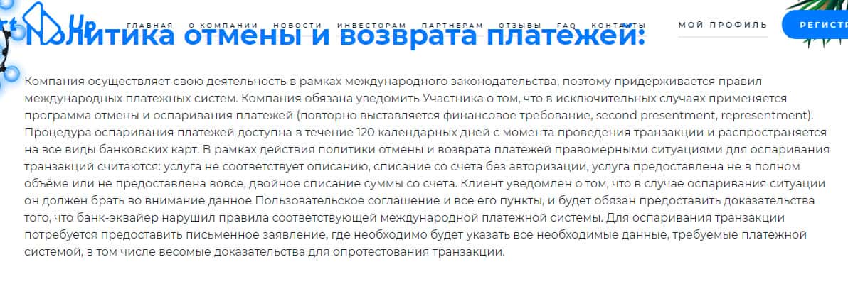 А вот политика отмены и возврата платежей, предоставляемая шулерами StartupMoney Company, также имеет место быть в связи с тем, что они попросту не хотят отдавать деньги своим клиентам. В основном все причины они списывают на международное право и предлагают судиться с ними до белого каления.